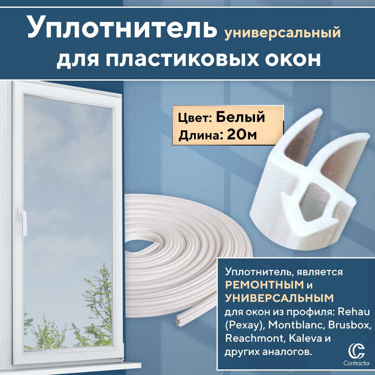 Купить Уплотнитель для окон и дверей из профиля Рехау и аналогов, белый 20 метров