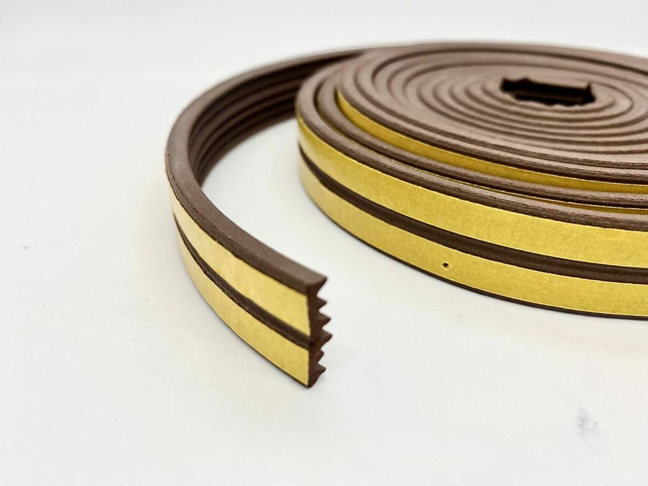 Уплотнитель самоклеющийся для окон и дверей резиновый, коричневый Е-профиль, 9*4 мм, 6м