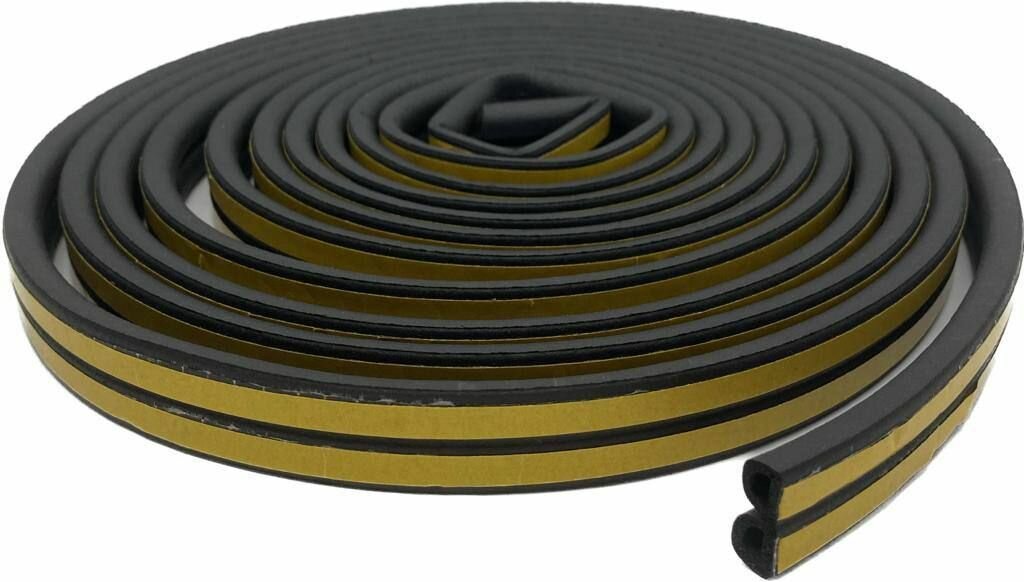 Уплотнитель самоклеющийся для окон и дверей резиновый, черный D-профиль, 12*10 мм, 6м