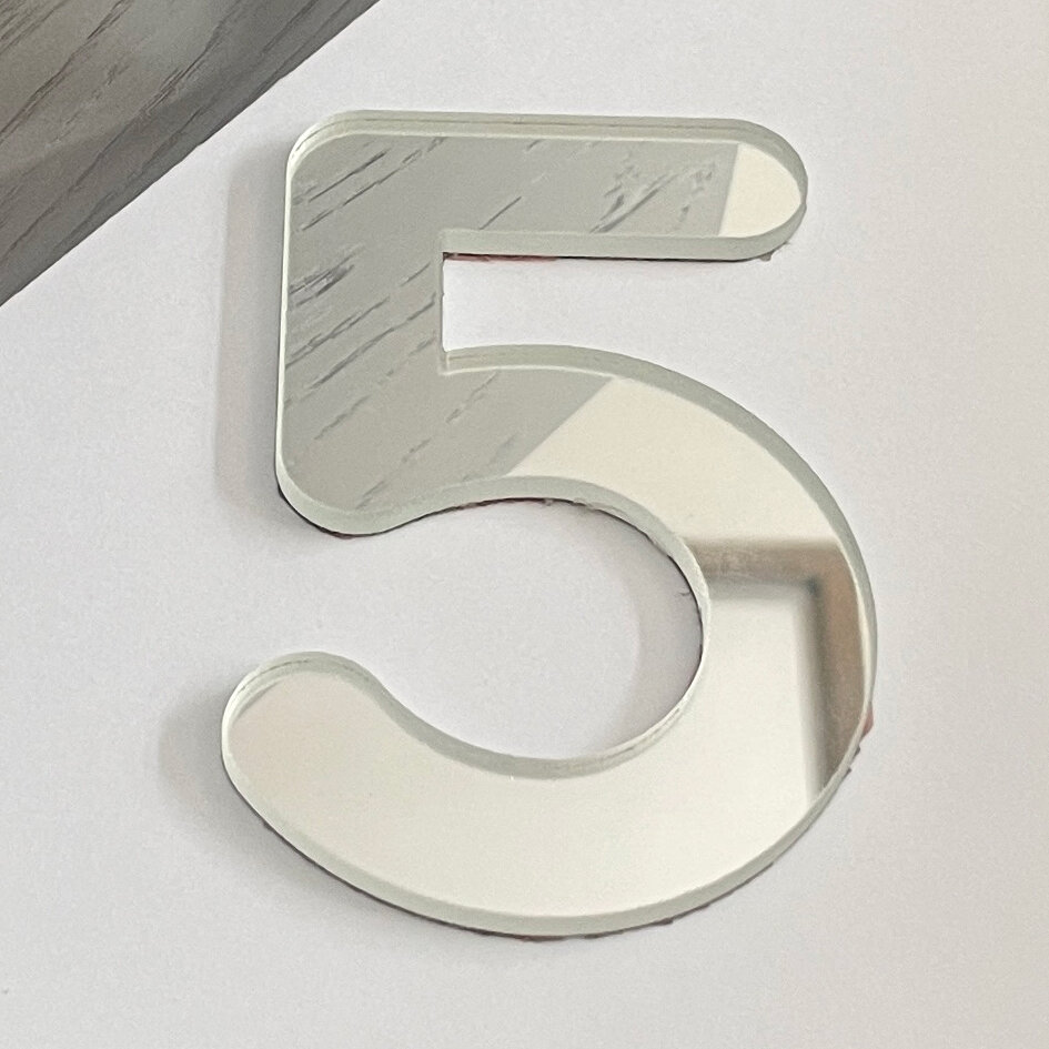 Купить Цифра "5" зеркальная самоклеящаяся 10х6см, стекло 6 мм