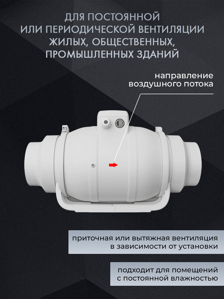Вентилятор канальный VEO TT 100, D 100 мм, вытяжной, приточный интересное:
