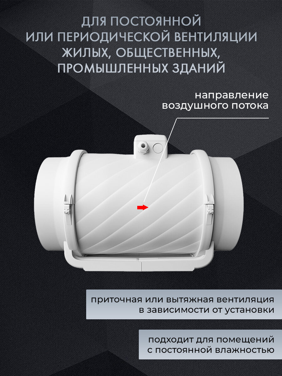 Вентилятор канальный VEO TT 200, D 200 мм, вытяжной, приточный интересное: