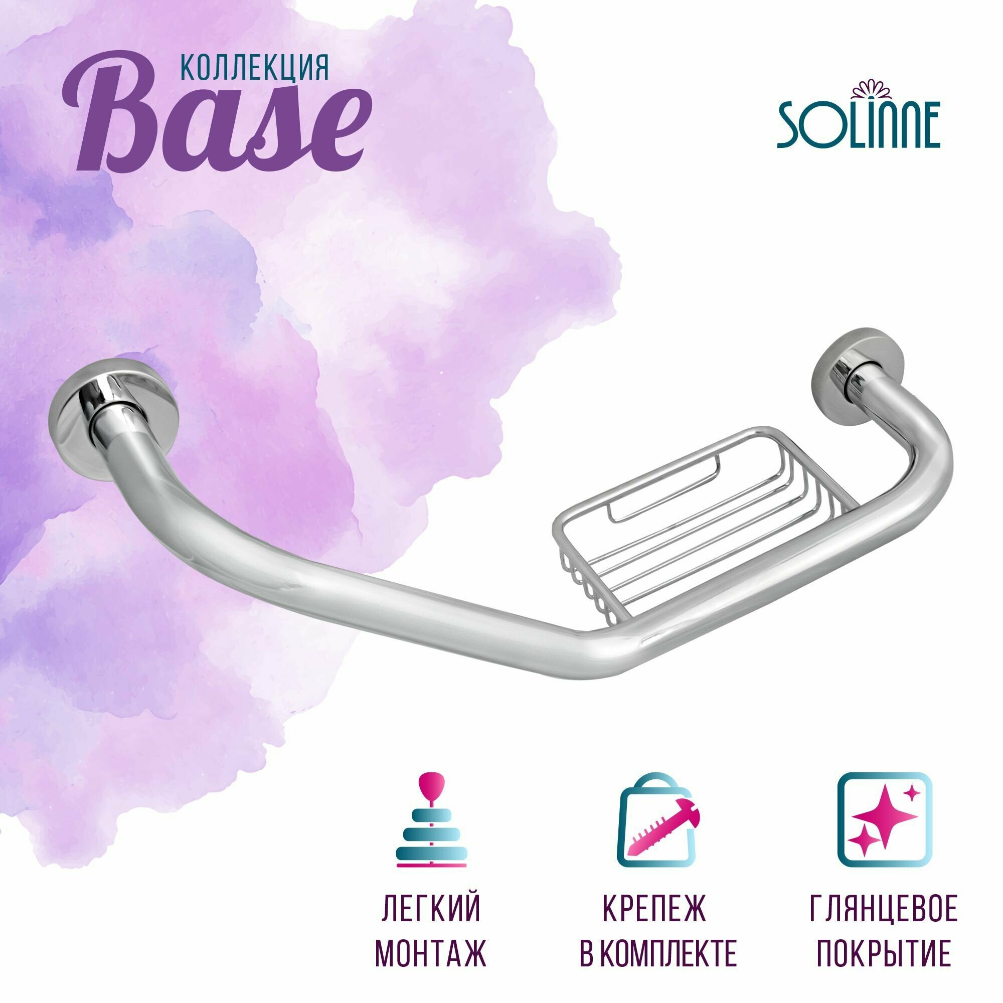 Поручень L образный с мыльницей «Solinne», 11425, хром, Коллекция Base интересное: