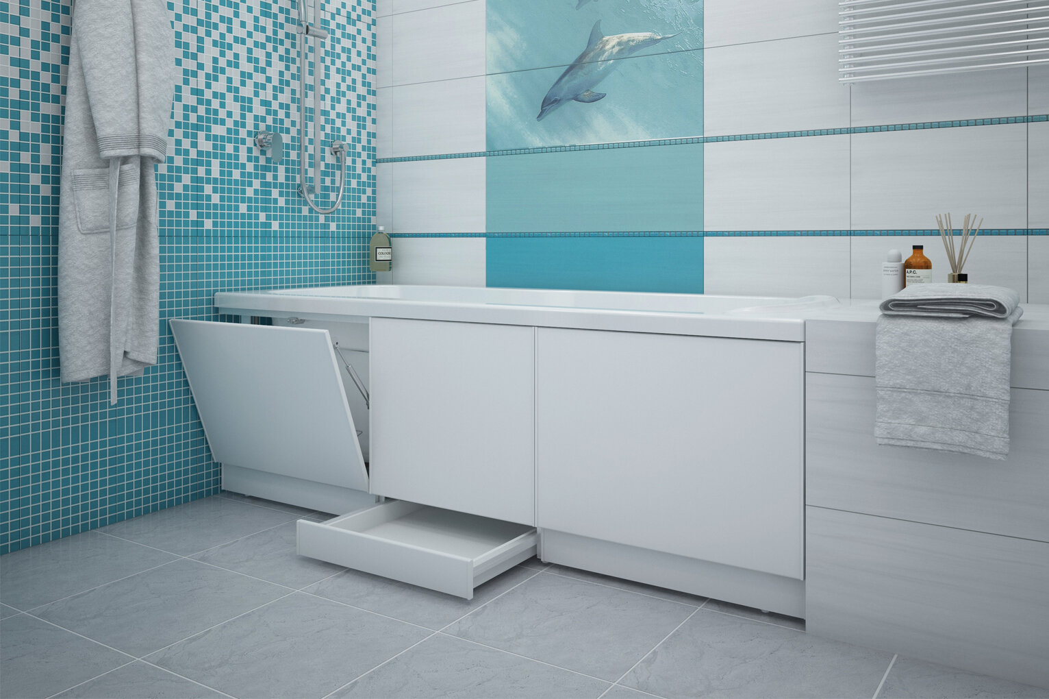 Экран ПВХ метакам под ванну 1,7 м С Выдвижным ящиком белый, водостойкий интересное: