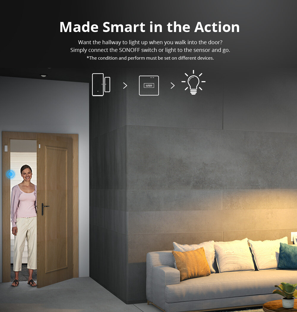 Датчик открытия двери/окна Sonoff DW2-RF интересное: