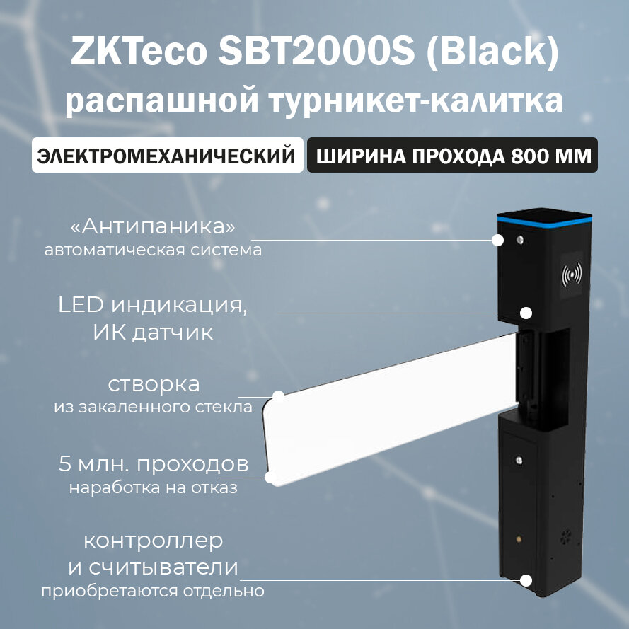ZKTeco SBT2000S (Black) турникет-калитка с распашной створкой (считыватель и контроллер заказывается отдельно) / автоматическая калитка с электромеханическим приводом интересное: