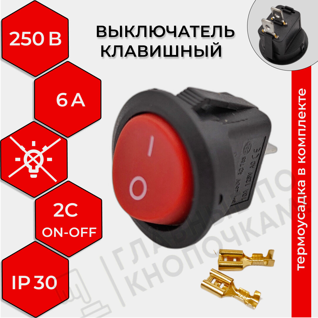Ниже Вы можете прочитать отзывы на Выключатель клавишный круглый 250V 6А (2с) ON-OFF красный (комплект с клеммами и термоусадкой), ознакомится с подробными характеристиками, посмотреть интересные обзоры и фотографии на Выключатель клавишный круглый 250V 6А (2с) ON-OFF красный (комплект с клеммами и термоусадкой).