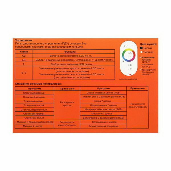 Контроллер для RGB ленты, 12 – 24 В, 18 А, пульт ДУ, белый интересное: