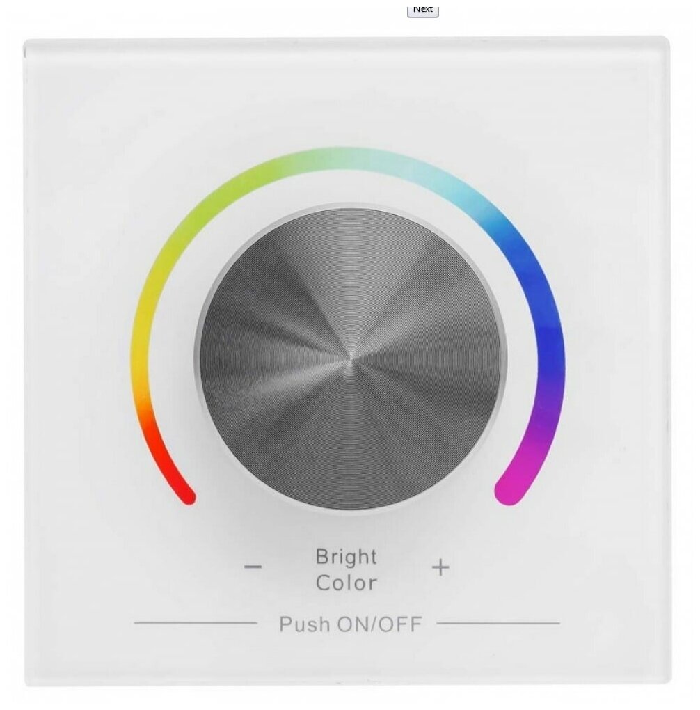 Контроллер для управления многоцветной светодиодной лентой RGB 12/24В, 144/288Вт, степень защиты IP33, Встраиваемый контроллер для светодиодных цветных лент с диммером и поворотной ручкой 3 канала - 4А, 04-14