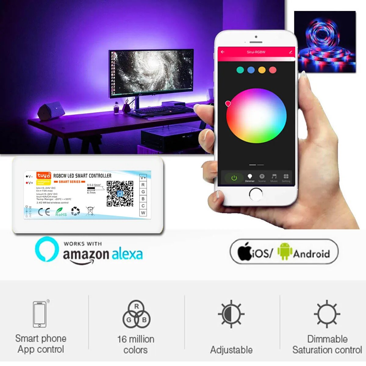 Беспроводное светодиодное управление, Поддержка iOs Android APP Alexa Google Голосовое управление для светодиодной ленты DIM CCT RGB RGBW RGBCCT интересное: