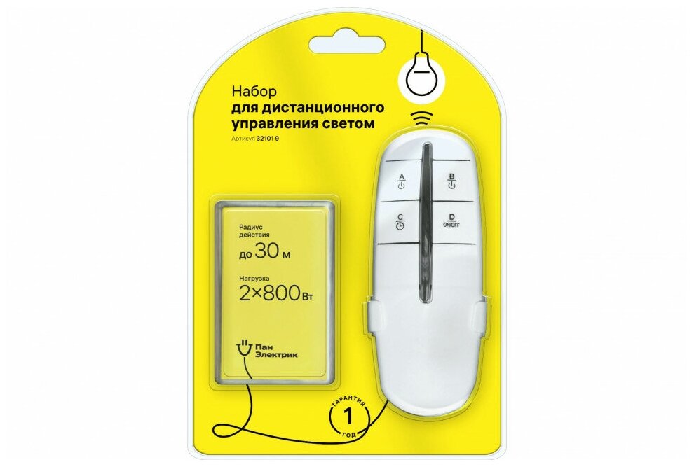 32101 9 Набор дистанционного управления освещением, 2 канала, 2х800 Вт, радиус действия до 30м, пульт ДУ, белый, 32101 9, Пан Электрик, цена за 1 шт. интересное: