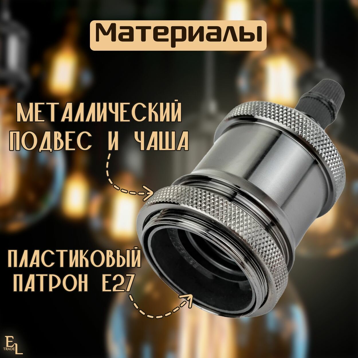 Патрон подвесной Е27, металлический "Лофт", черный TDM SQ0335-0047 (1 шт.) интересное: