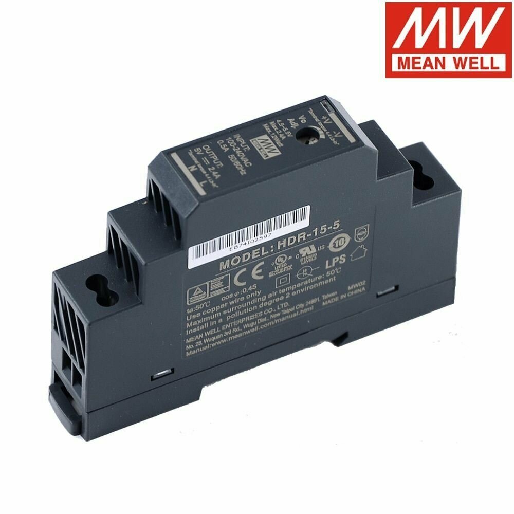 Блок питания модульный на DIN рейку 5в, 2.4а, 17.5*90*54.5мм, Mean Well HDR-15-5 интересное: