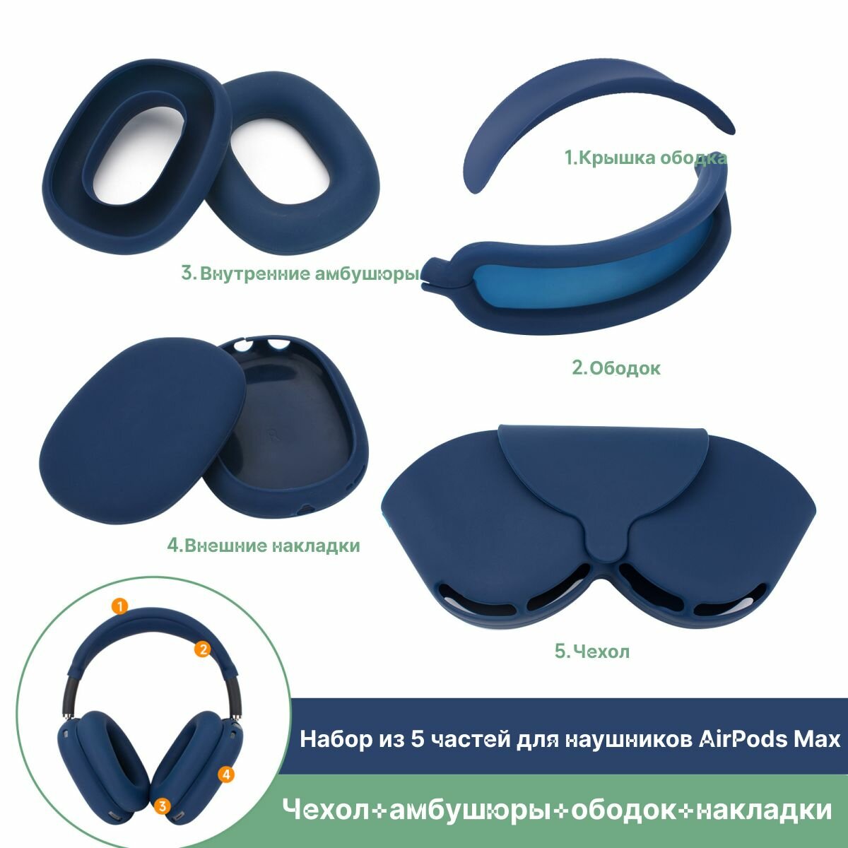 Набор полной защиты для AirPods Max, силиконовый однотонный набор защиты для наушников, темно-синий