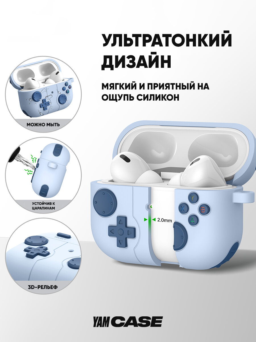 Чехол для наушников Apple AirPods Pro, Pro 2 голубой силиконовый интересное: