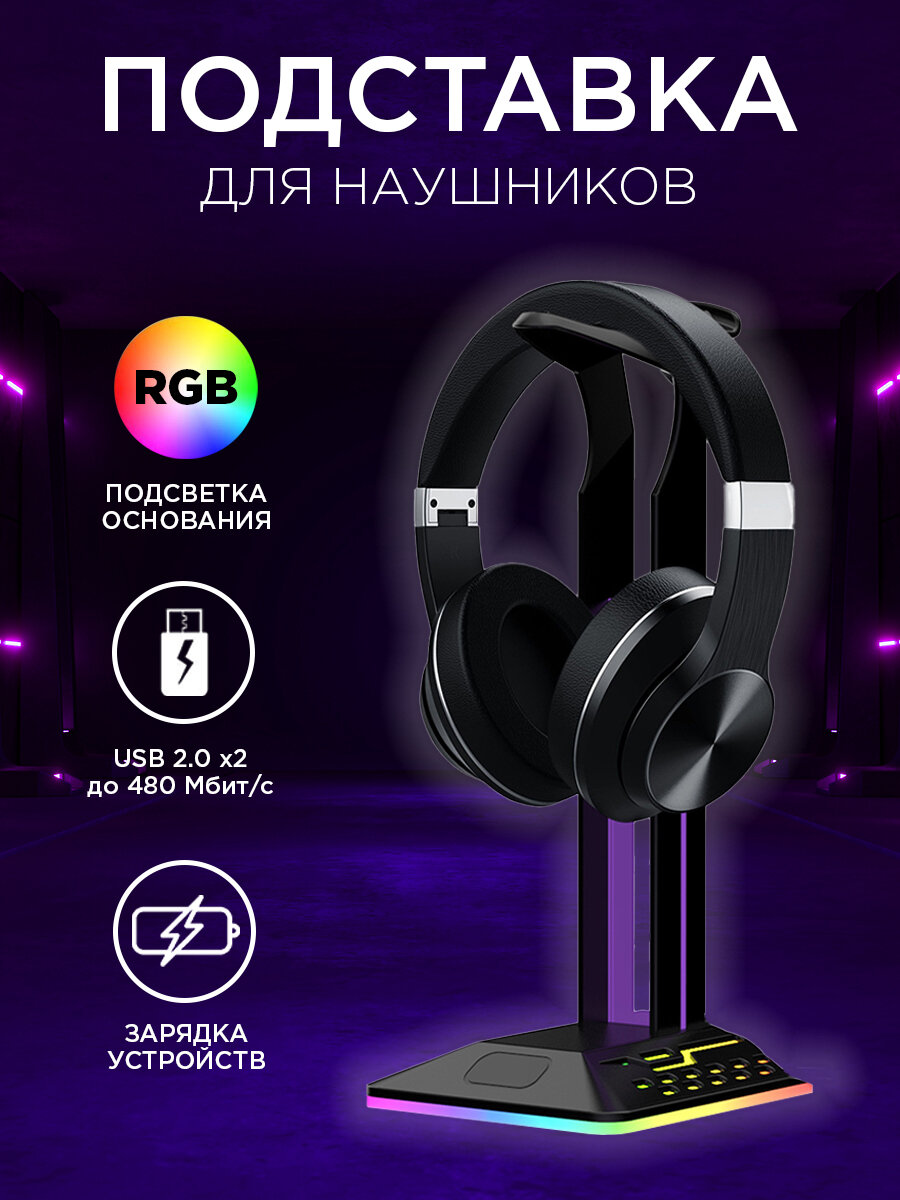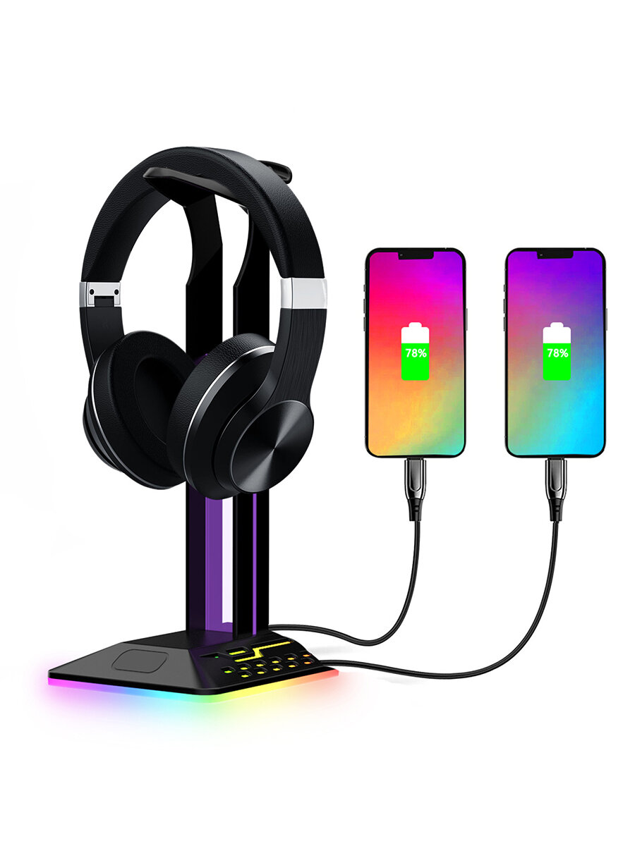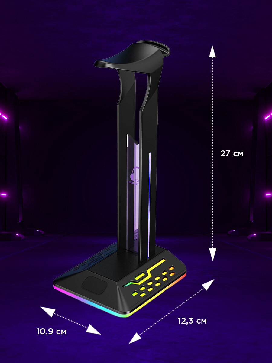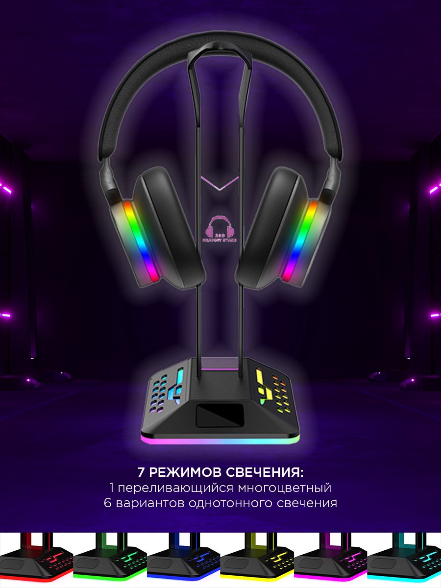 Подставка для наушников и гарнитуры D9 с подсветкой и хабом