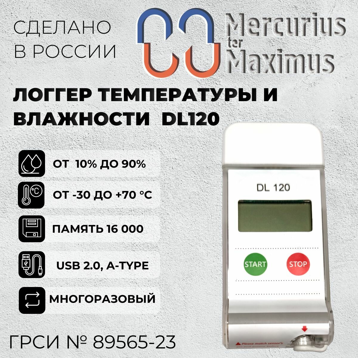 Измеритель-регистратор (логгер) температуры и влажности с встроенным датчиком MERMAX DL120