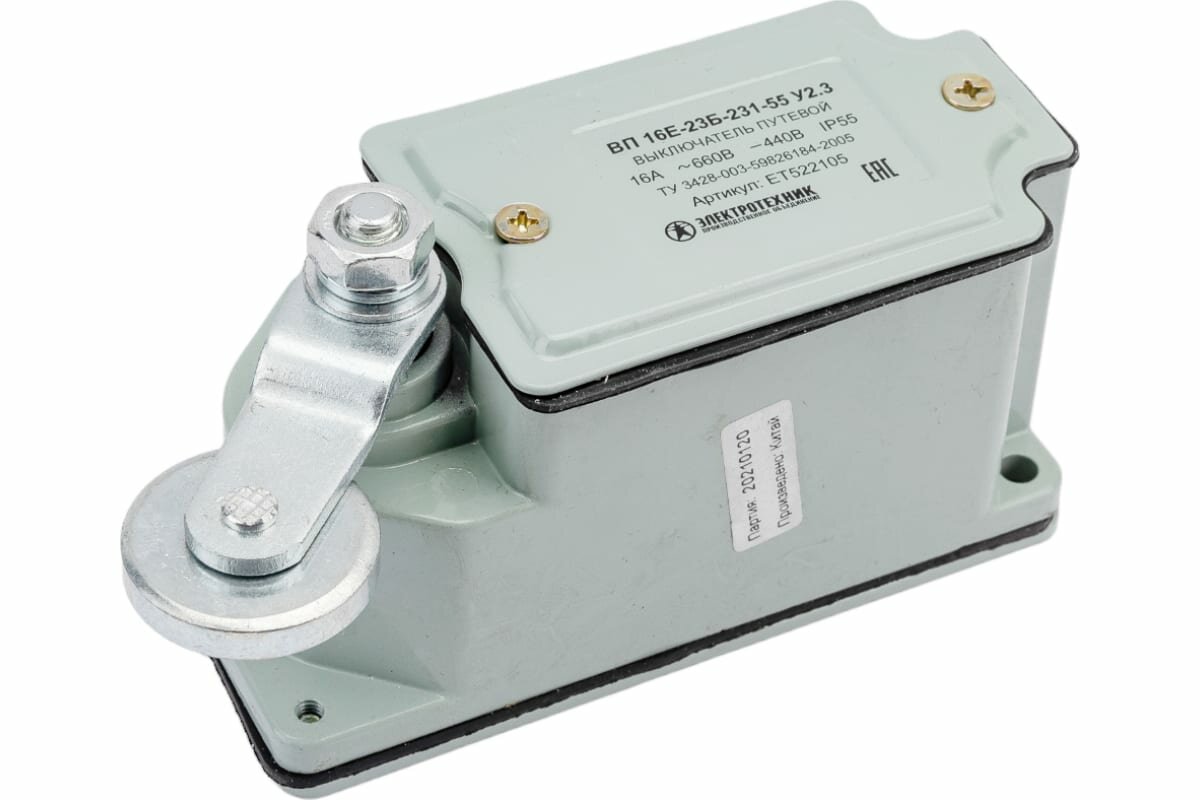 Выключатель путевой ВП 16Е-23Б-231-55 У2.3, рычаг с роликом, с сальником, ход влево, cамовозврат, 1з+1р, IP55 (ЭТ), ET522105, ПО Электротехник интересное: