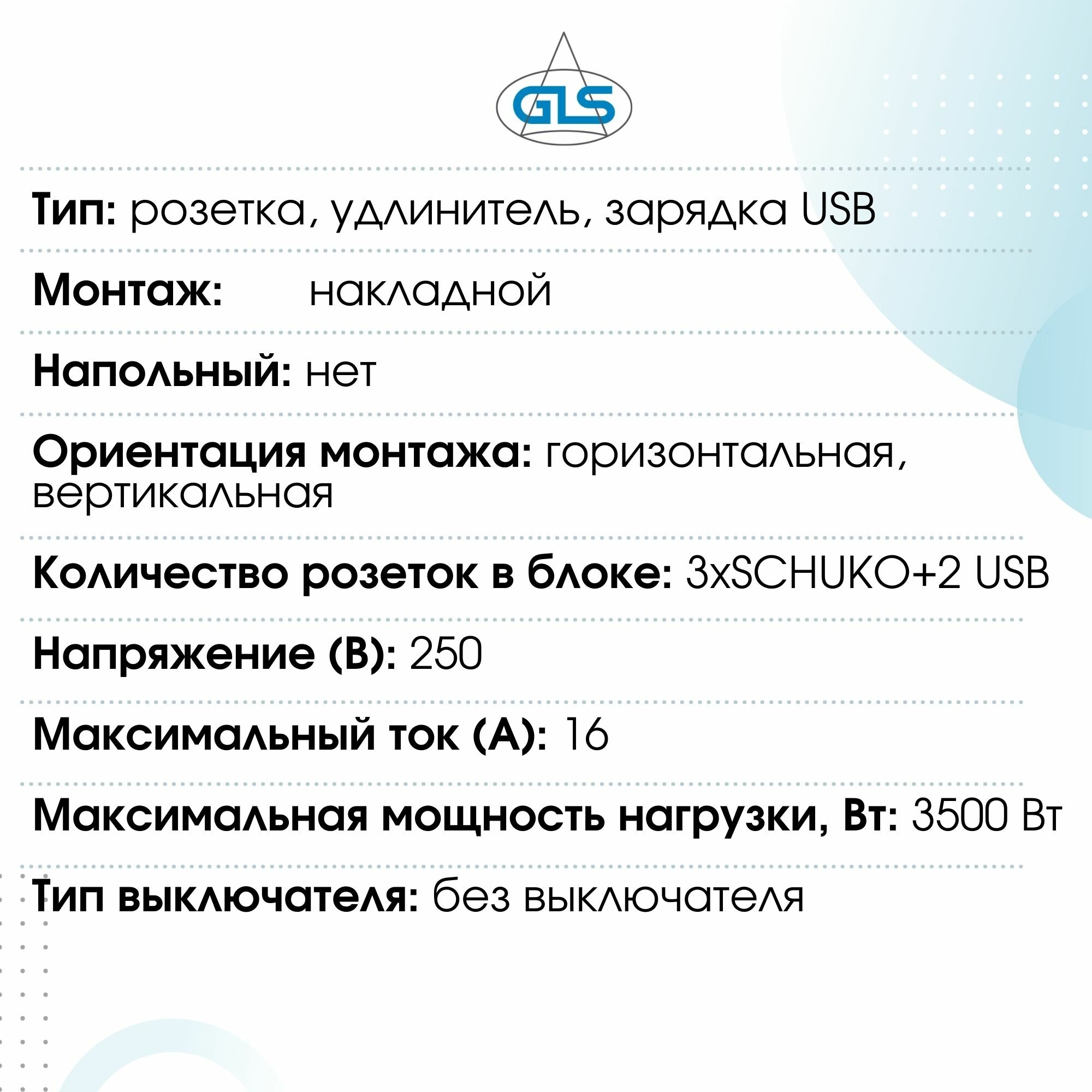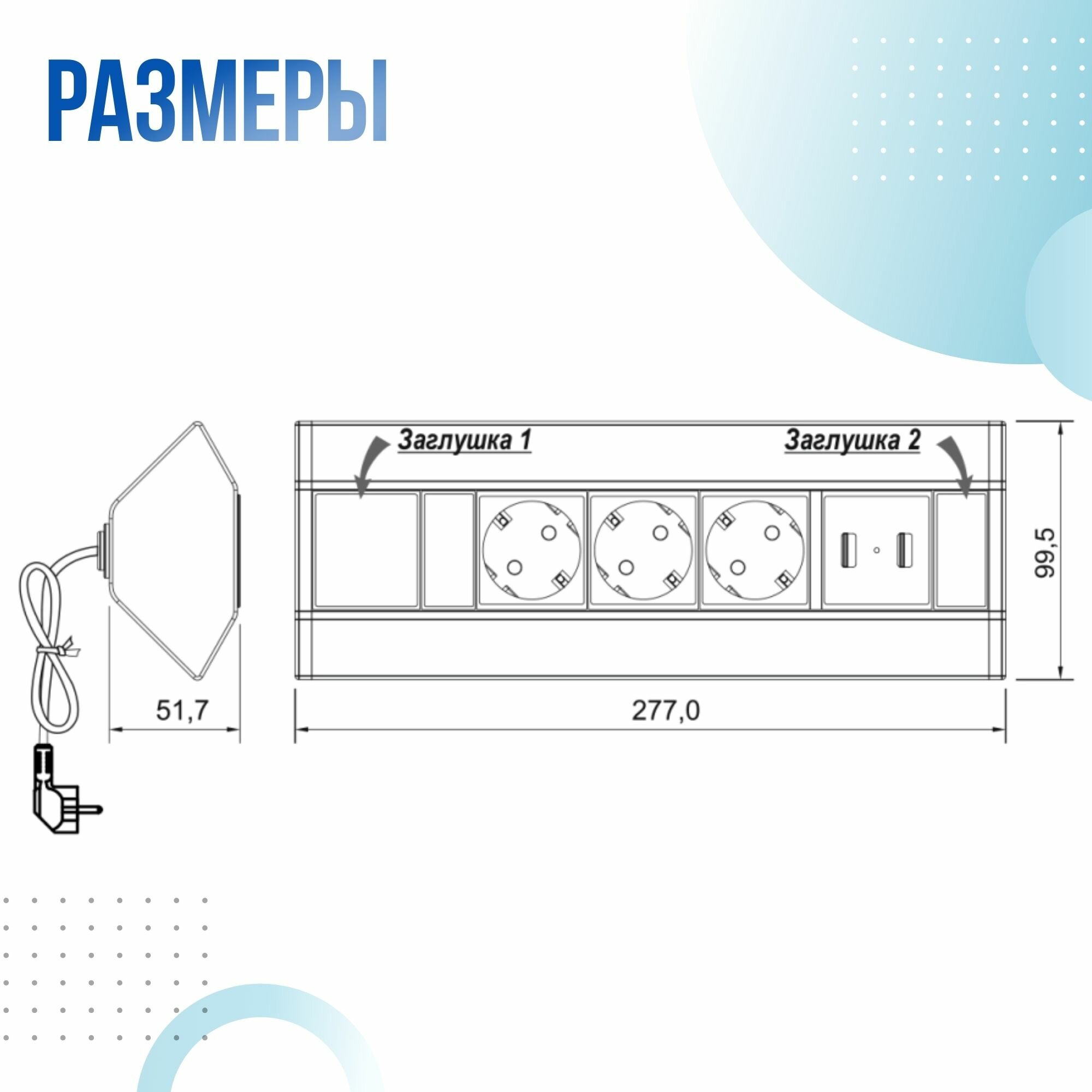 Блок розеток угловой Tringle 3 розетки, 2 USB, с удлинителем, серебристо-черный интересное: