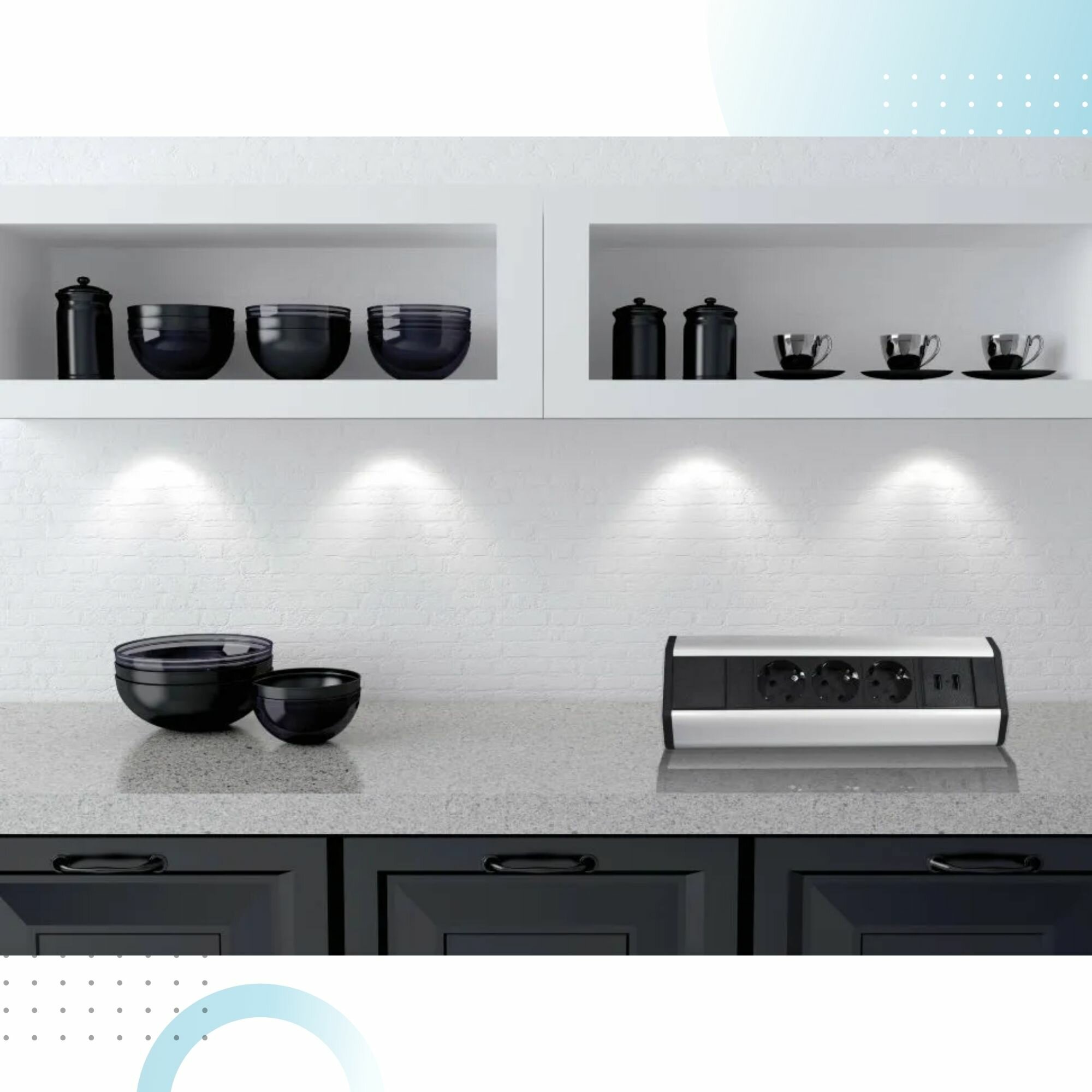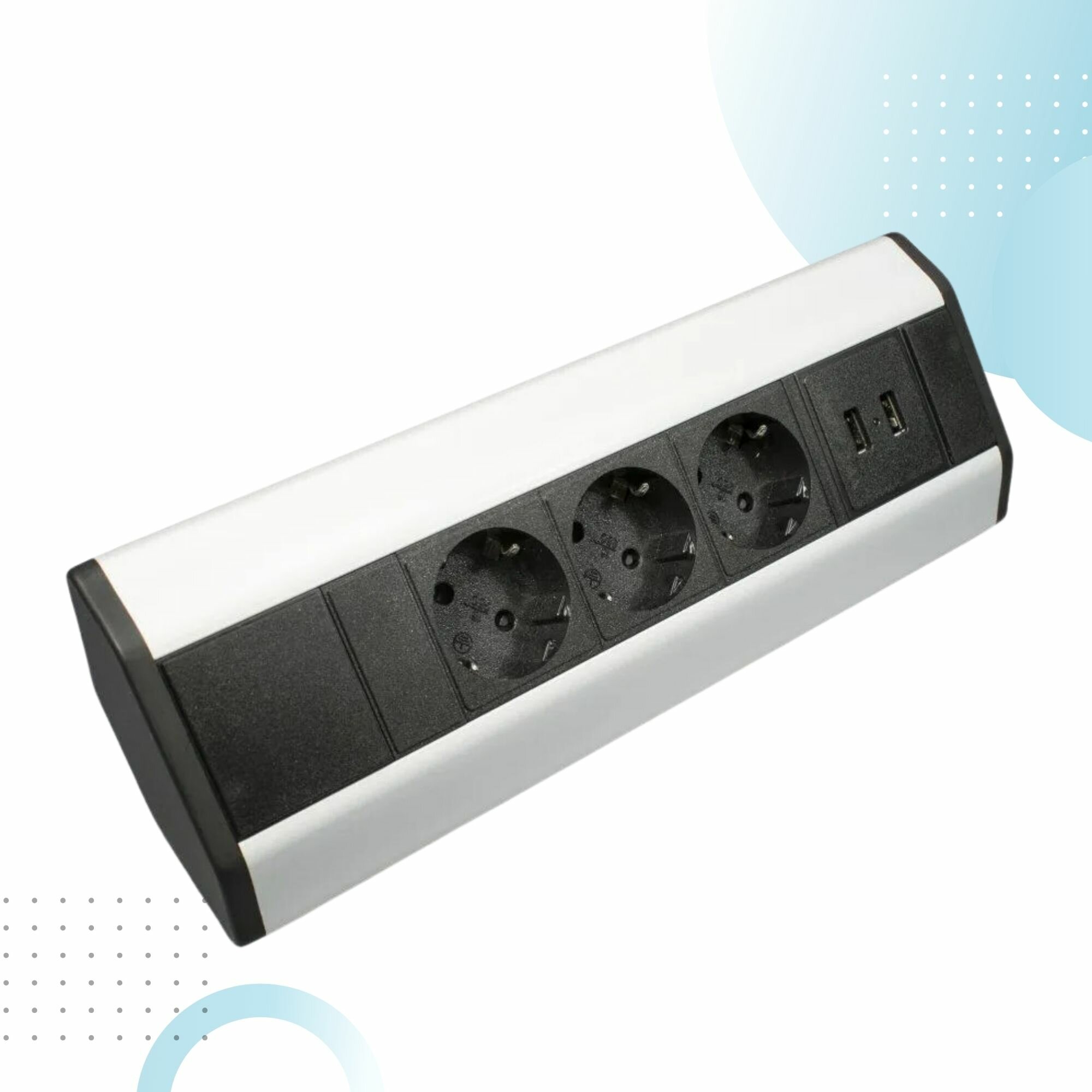 Купить Блок розеток угловой Tringle 3 розетки, 2 USB, с удлинителем, серебристо-черный