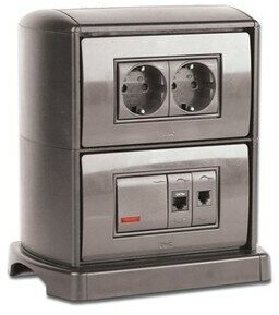 Блок офиблок компакт мебельный на 4 механизма К45 алюминий, графит Simon KFC104-14