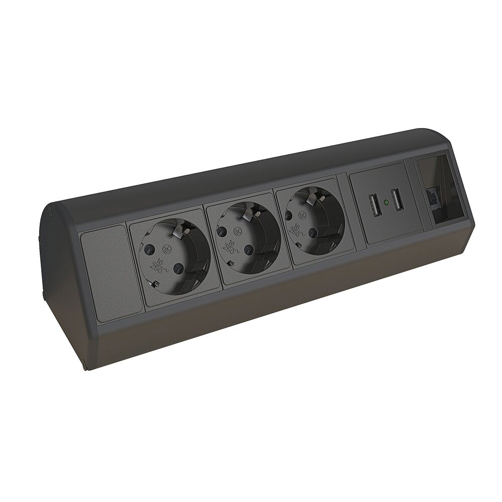 Kondator 935-D3DU- Розеточная станция серии Axessline с 3 розетками, 1хRJ45 и 2xUSB, черная интересное: