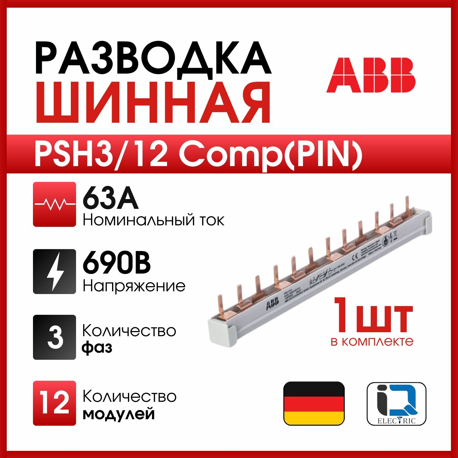 ABB PSH3/12 Шина 3Ф. к.h 12мод. 2CDL130001R1012 интересное: