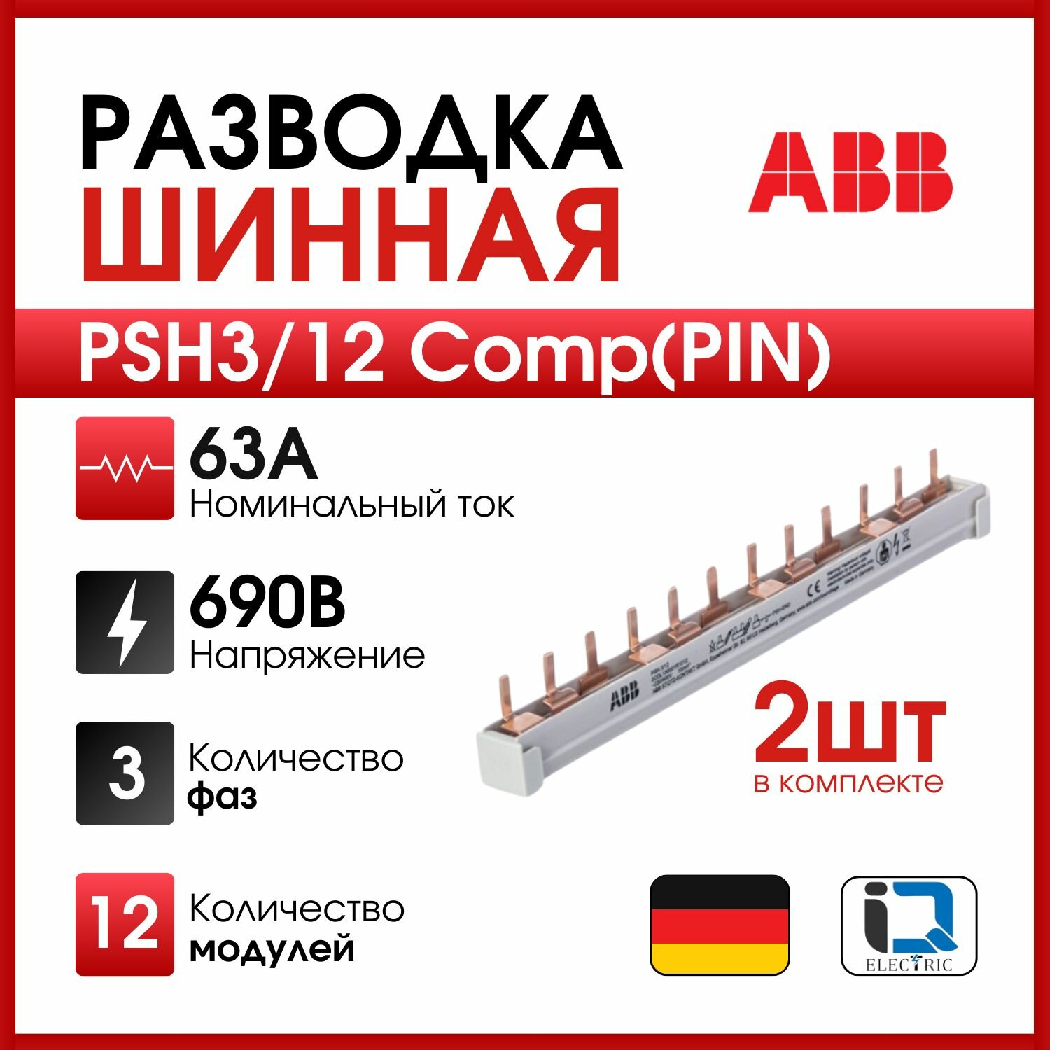 Разводка шинная 3ф PSH3/12 Comp(PIN) 2 шт. ABB 2CDL130001R1012 интересное: