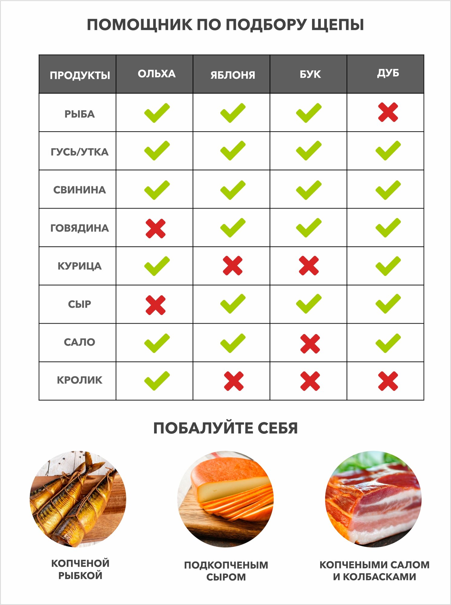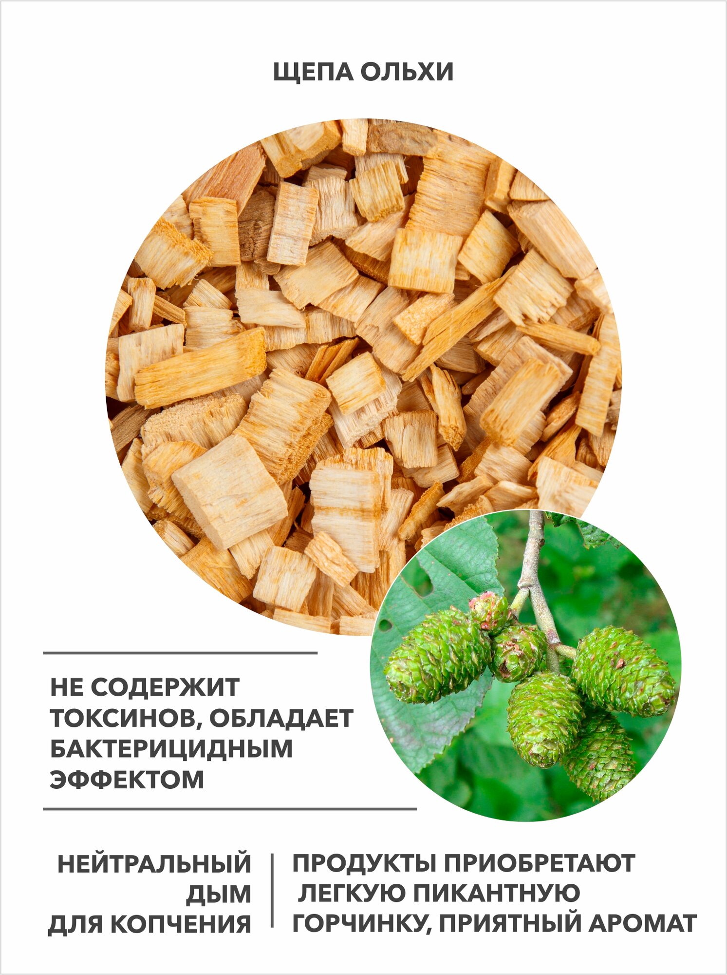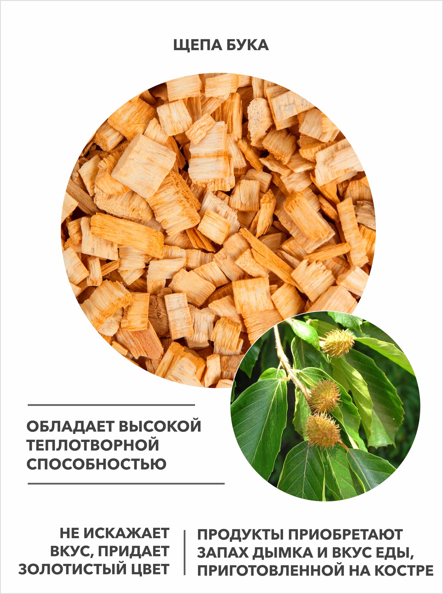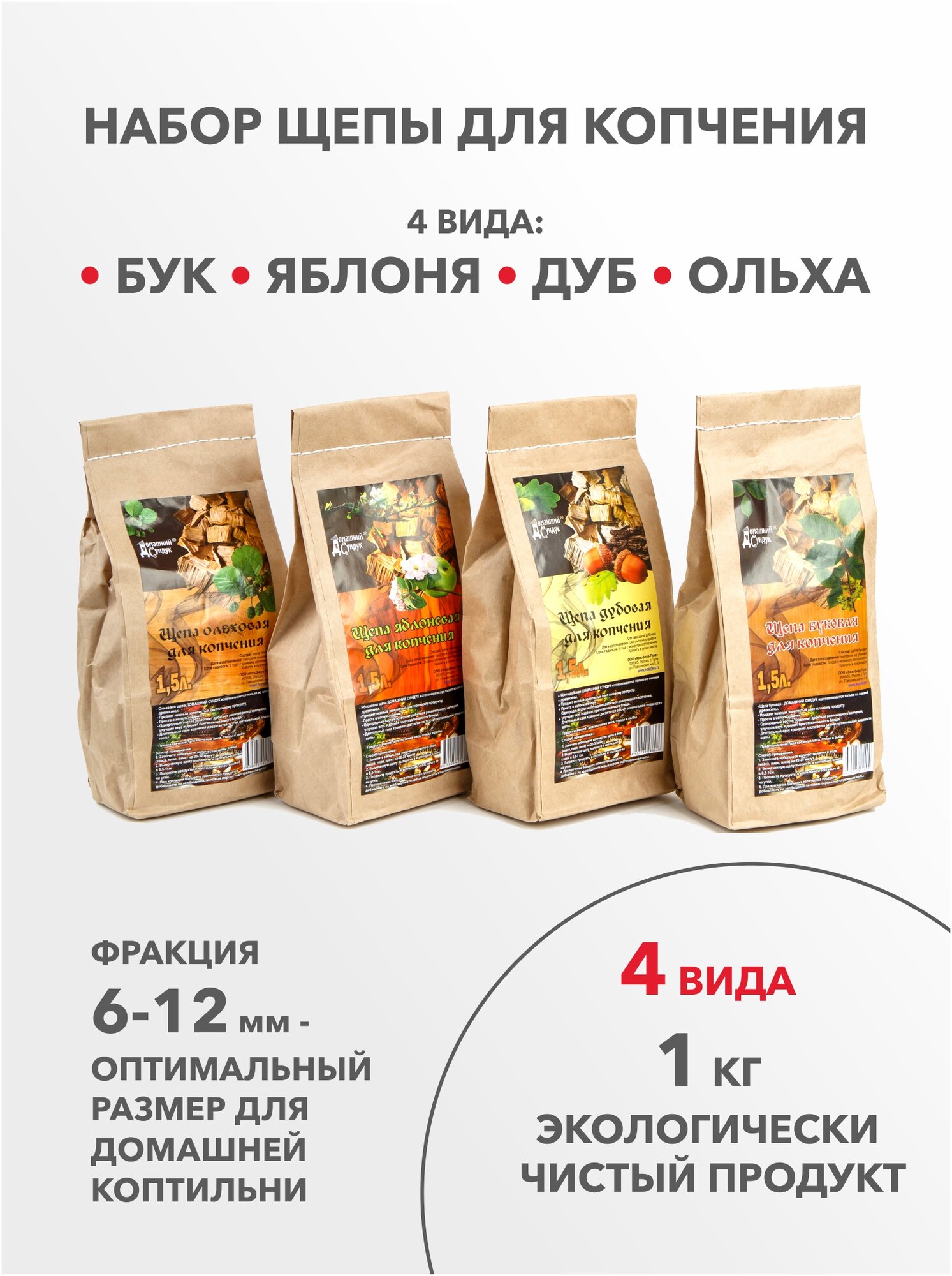 Щепа для копчения Домашний Сундук, набор 4 вида, ольховая, дубовая, буковая, яблоневая, 1 кг интересное:
