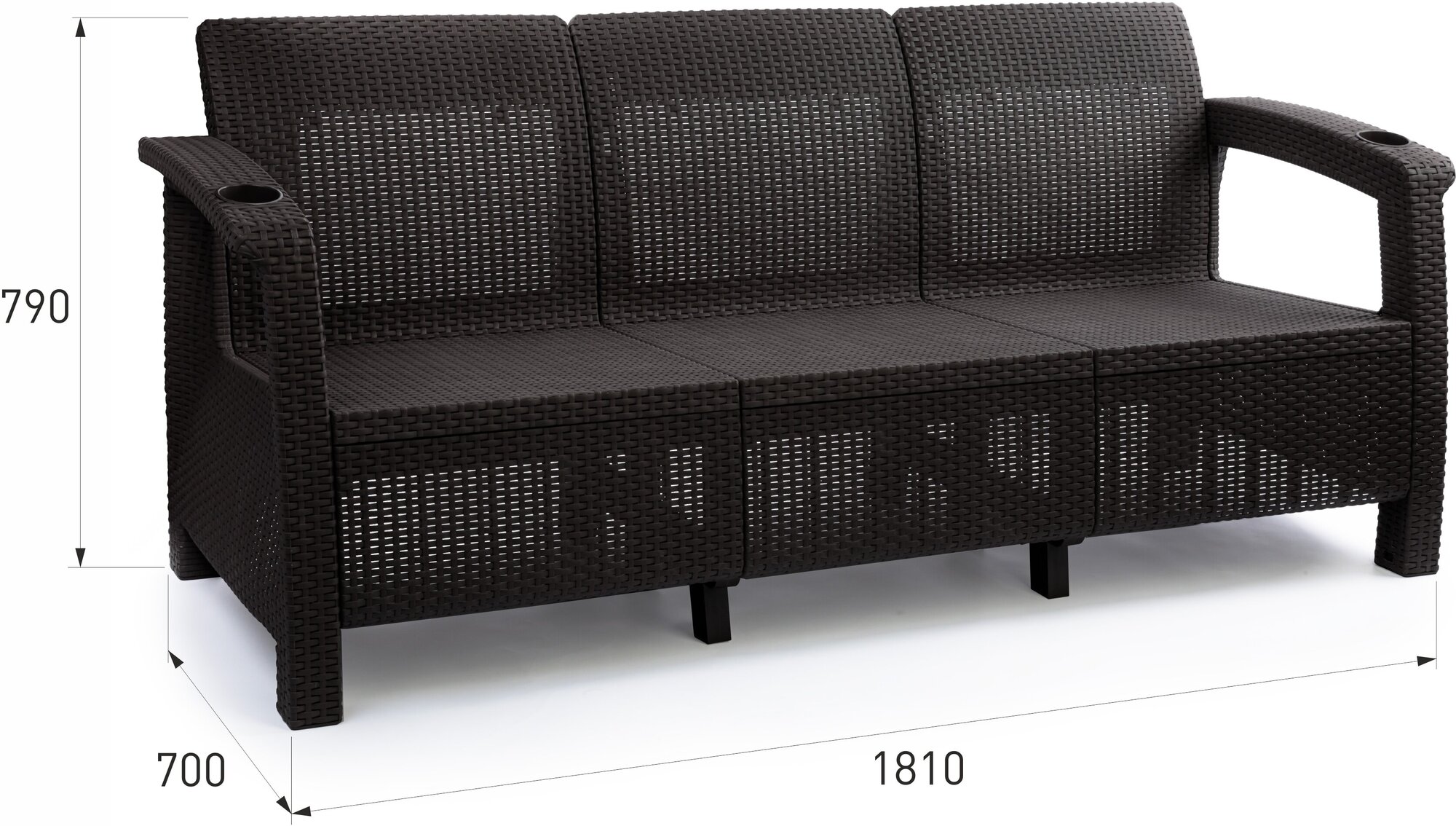 Диван садовый Ротанг, 3-х местный, 181x70x79 см, мокко, без подушек