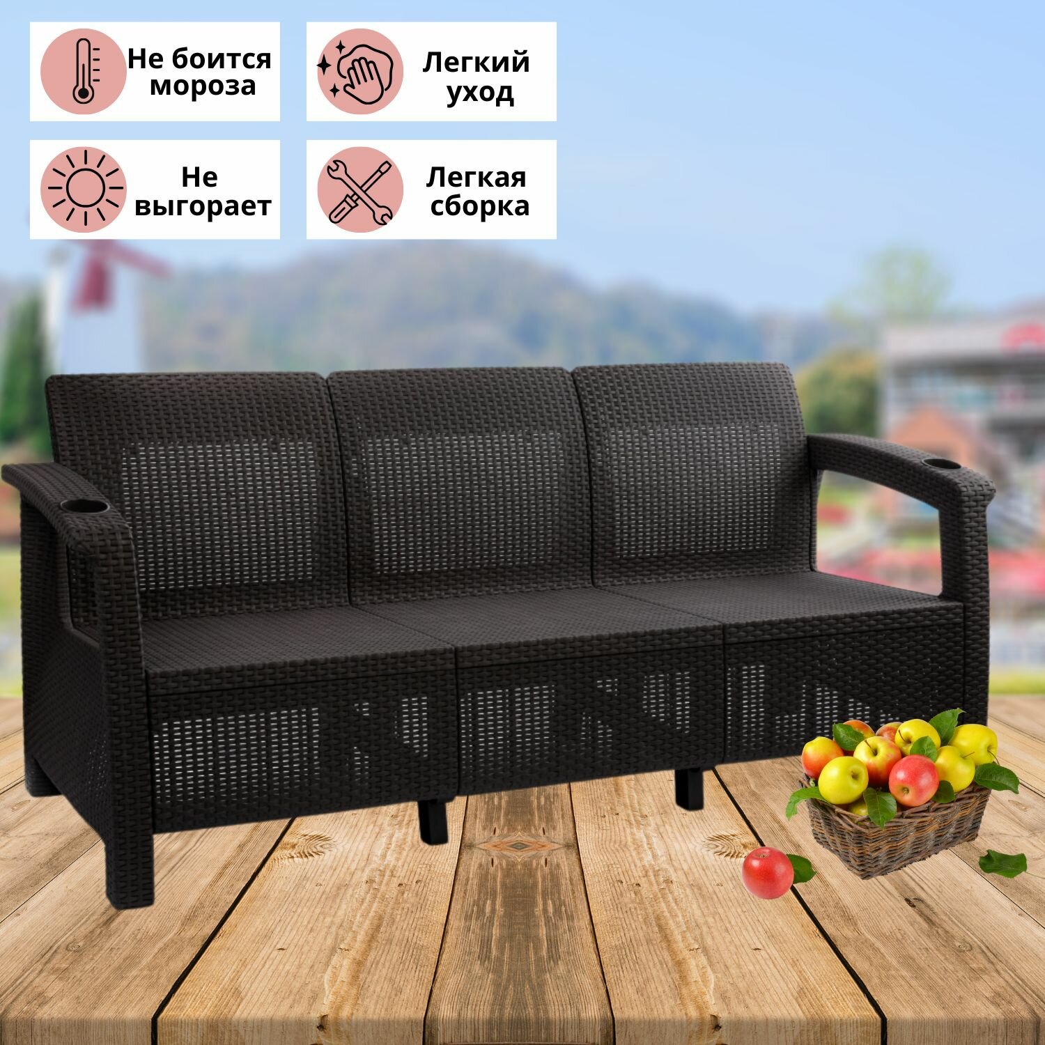Диван садовый Ротанг, 3-х местный, 181x70x79 см, мокко, без подушек