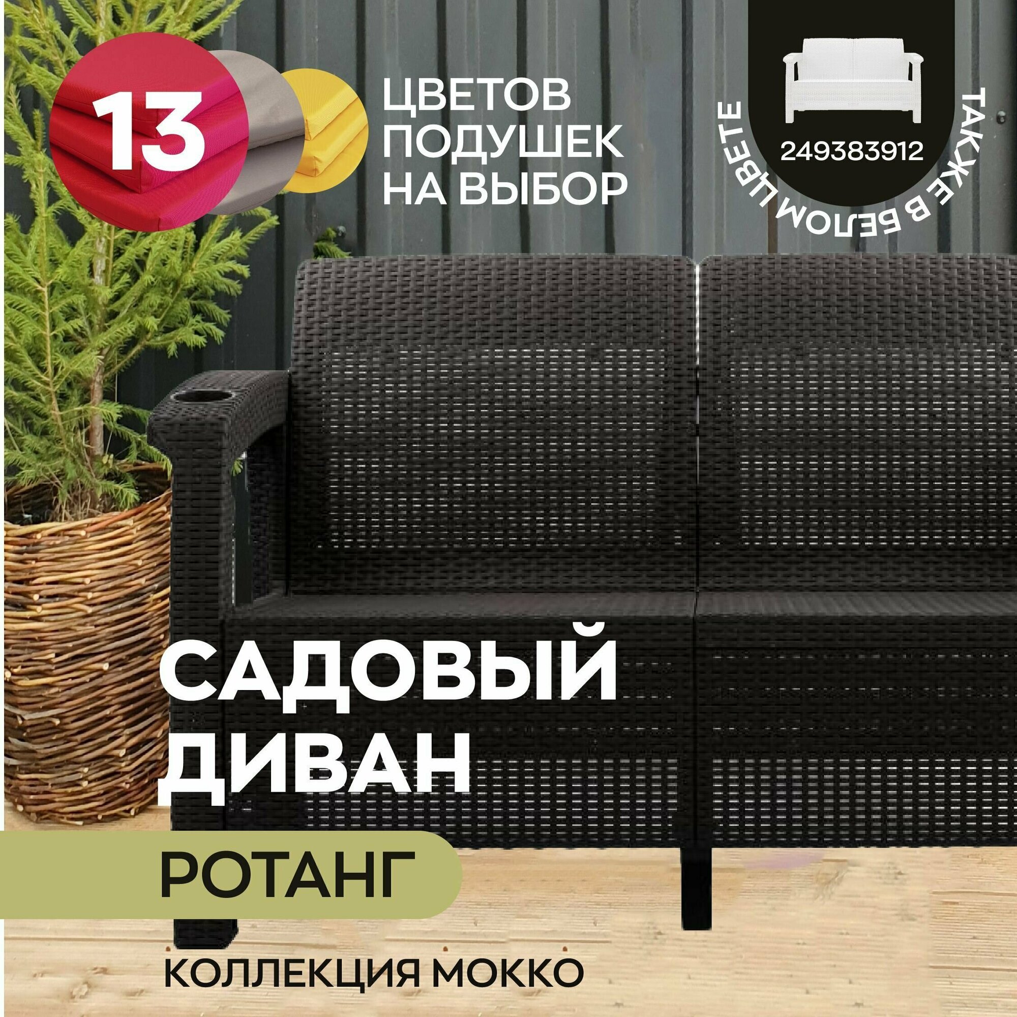Диван садовый из ротанга, 2-х местный, 127х70х79 см, мокко интересное: