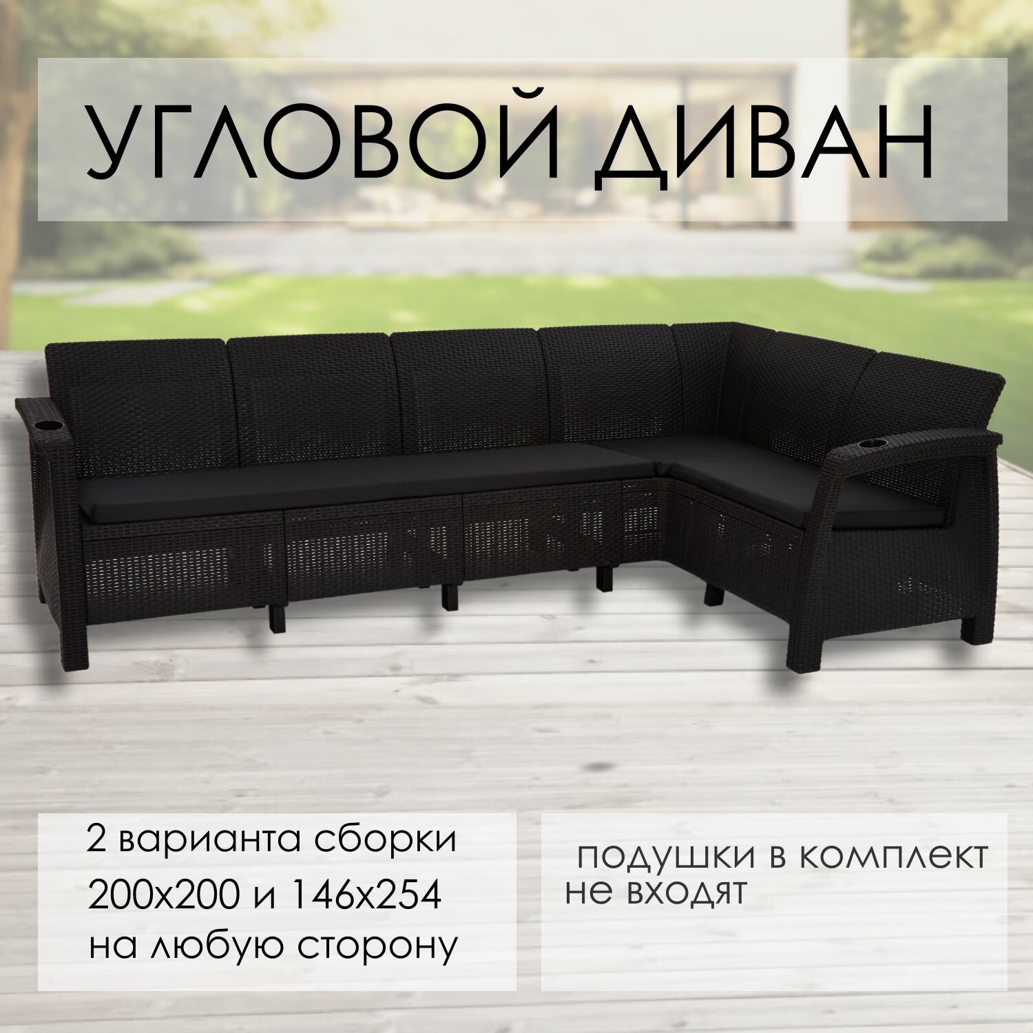 | Подробная комплектация | Диван садовый угловой - 1 шт., комплект подушек для углового дивана - 1 шт.; инструкция по сборке. |