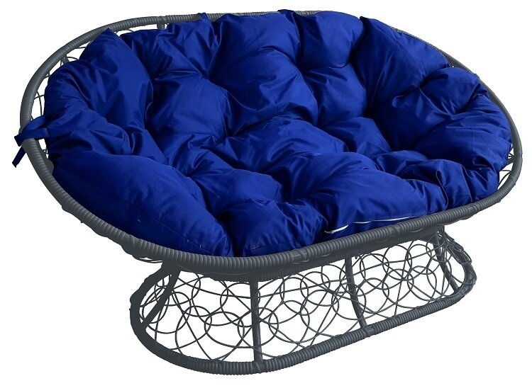 Купить Диван мамасан с ротангом серый, синяя подушка