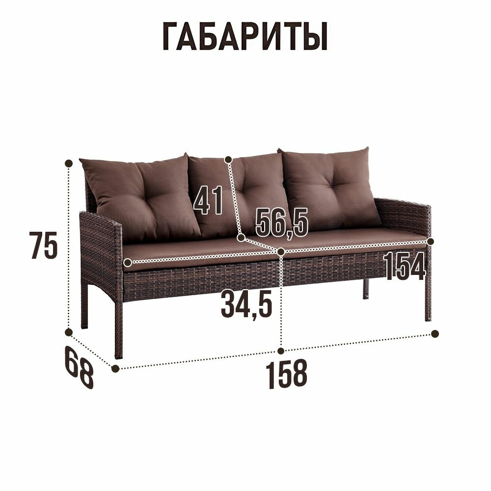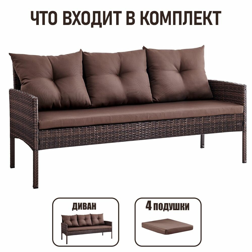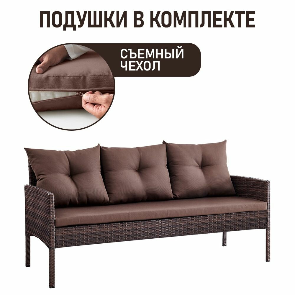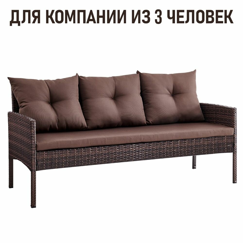 Диван садовый для дачи Фьорд трехместный из ротанга, шоколадный интересное: