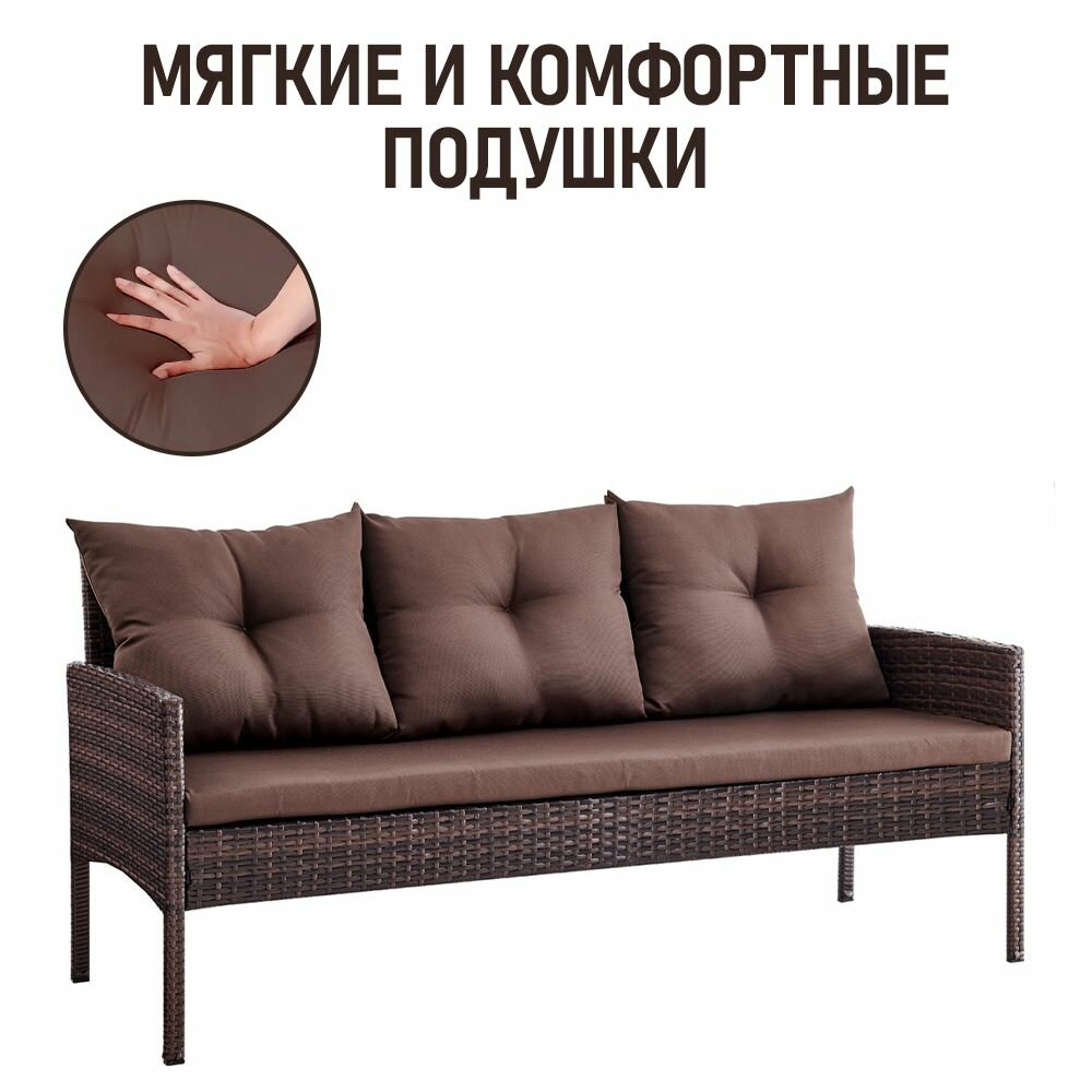 Купить Диван садовый для дачи Фьорд трехместный из ротанга, шоколадный