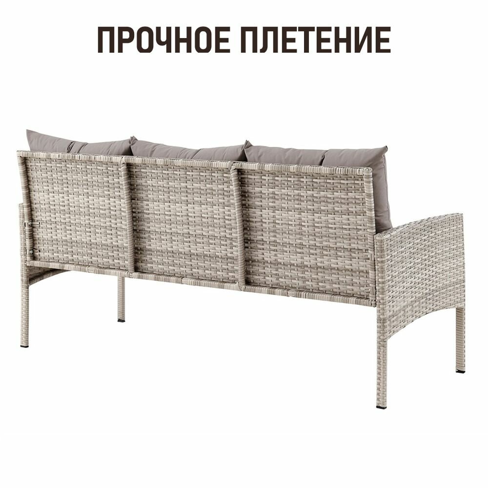 Диван садовый для дачи Фьорд трехместный из ротанга, серый интересное: