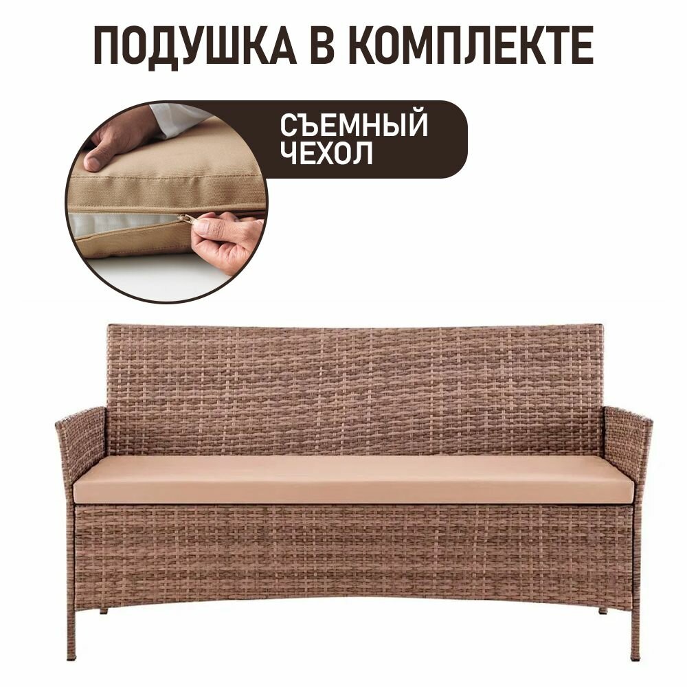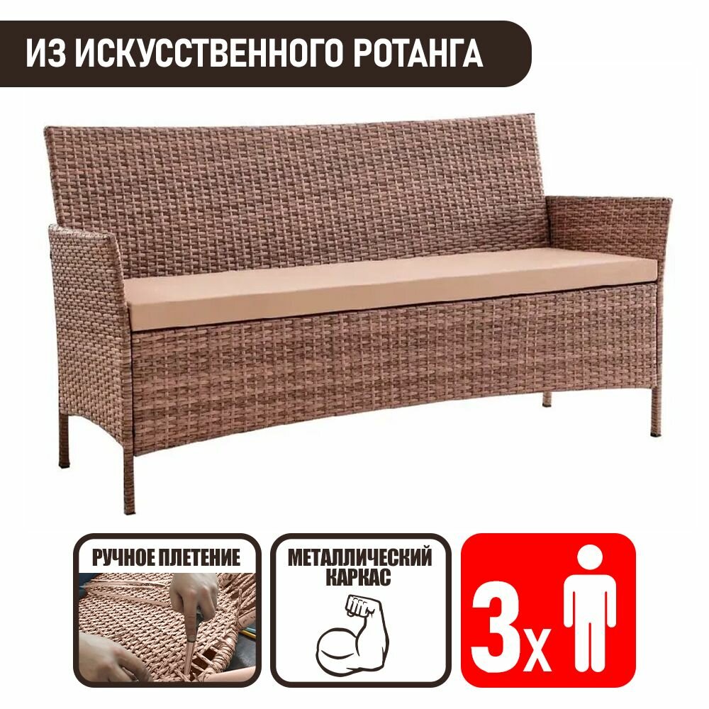 Диван садовый Киото трехместный из искусственного ротанга, капучино