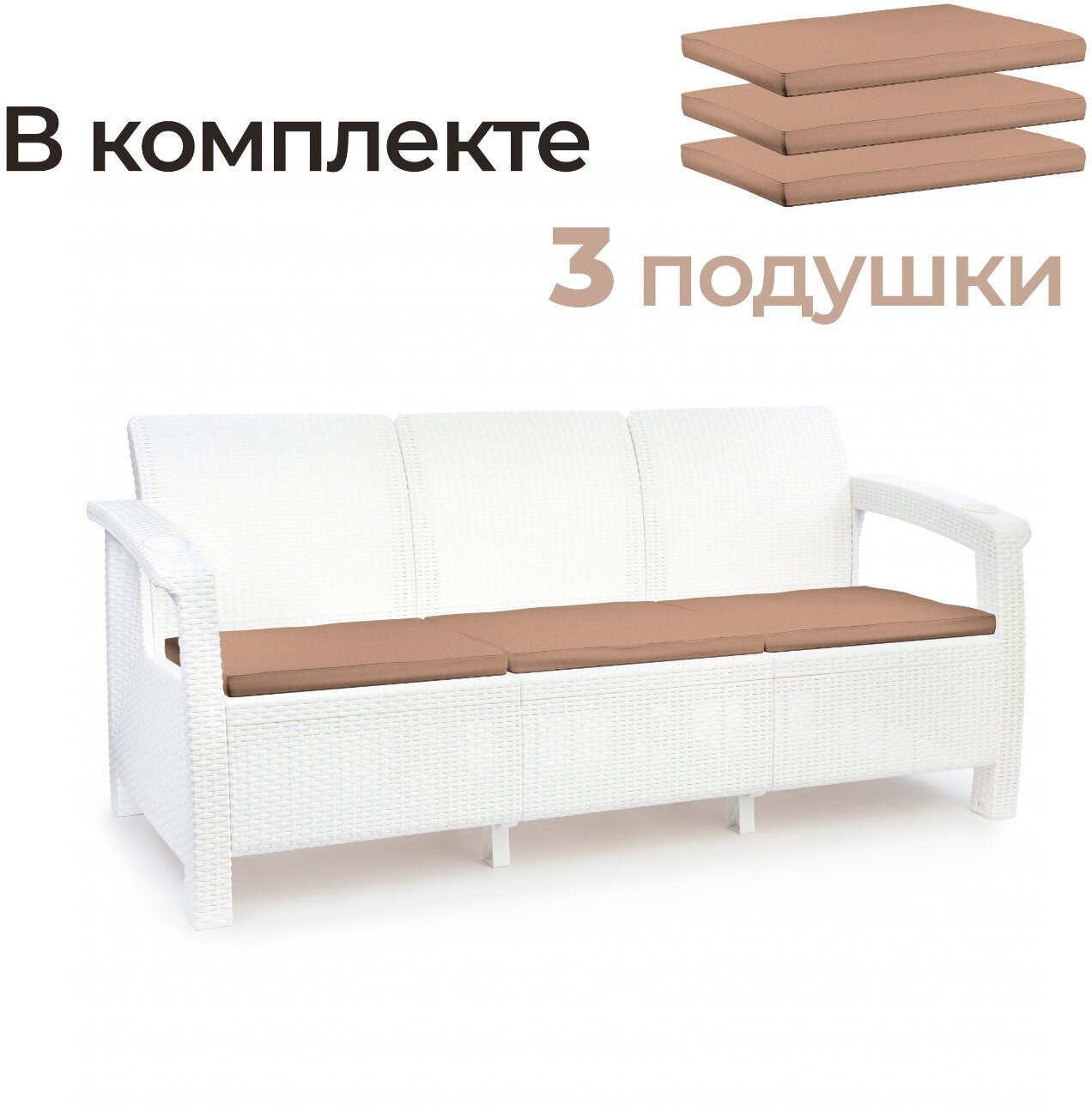 Диван 3-х местный Альтернатива Ротанг-Плюс 8349 (с бежевыми подушками) , белый интересное: