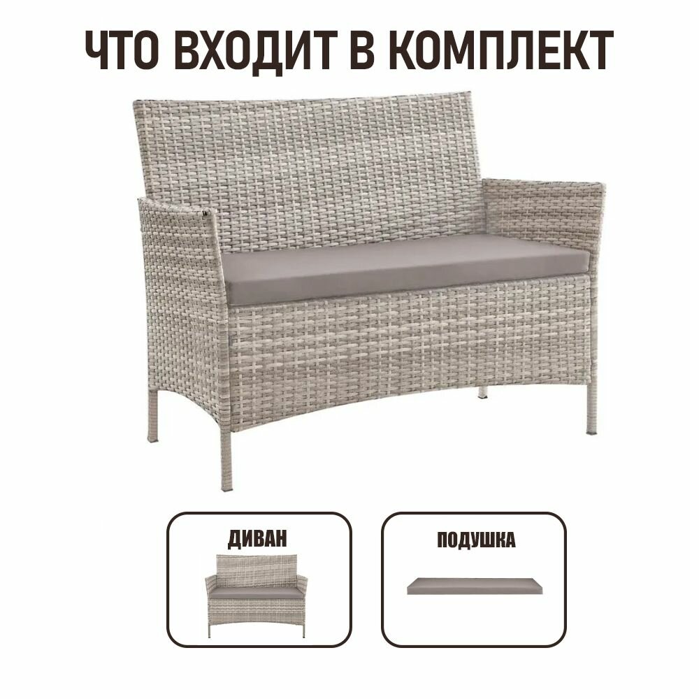 Диван садовый для дачи из ротанга Киото двухместный, серый интересное: