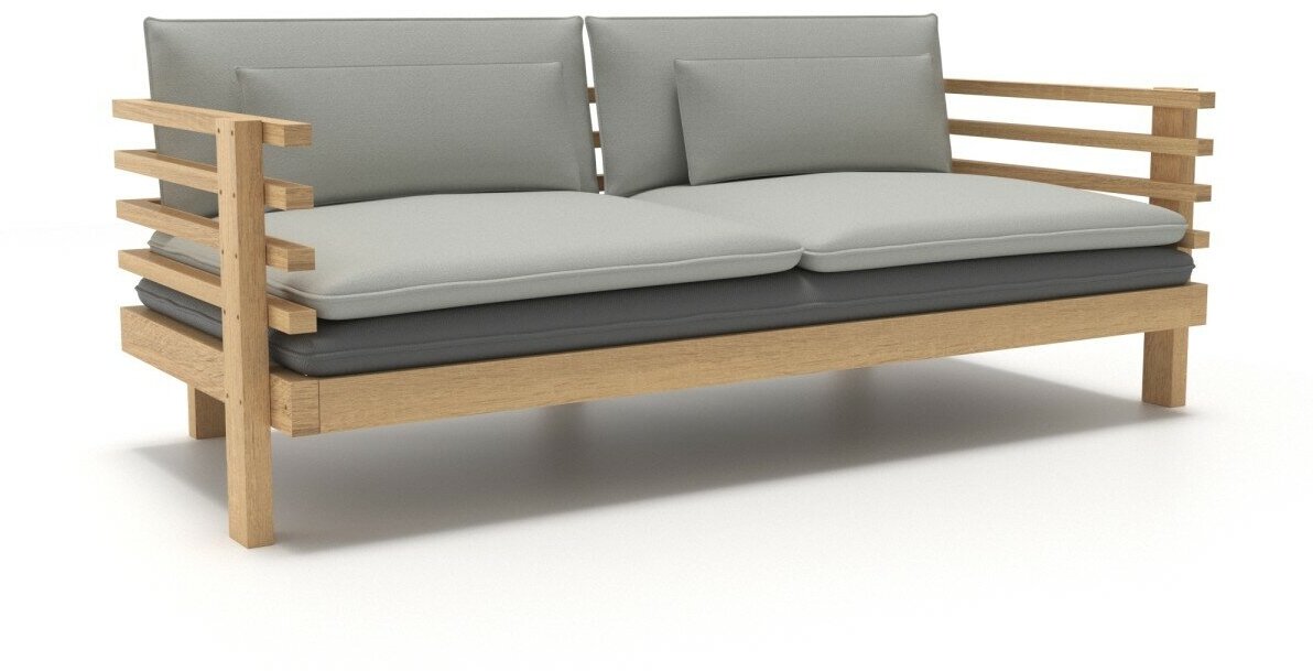 Купить Садовый диван Soft Element Атлантик-С трехместный, цвет Ash Gray, из дерева, с подлокотниками и подушками, на террасу, на веранду, для дачи и сада, дачный, для бани