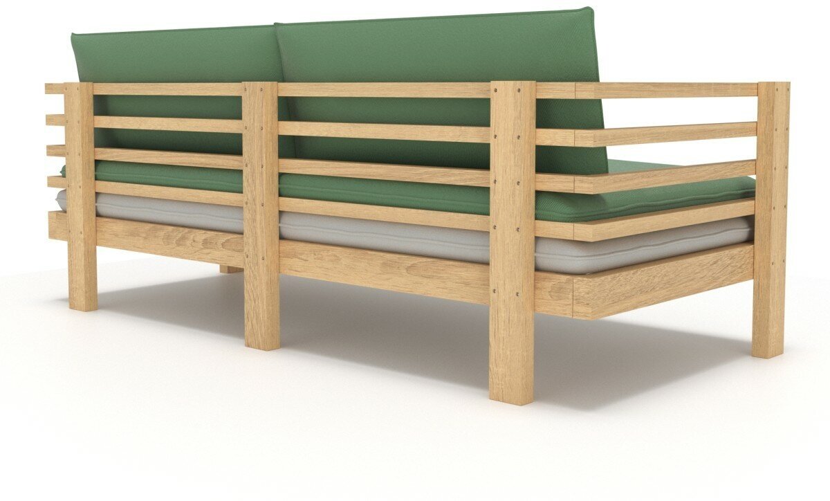Купить Диван садовый Soft Element Атлантик-С трехместный, цвет Green Ash, из дерева, с подлокотниками и подушками, на террасу, на веранду, для дачи и сада, дачный, для бани