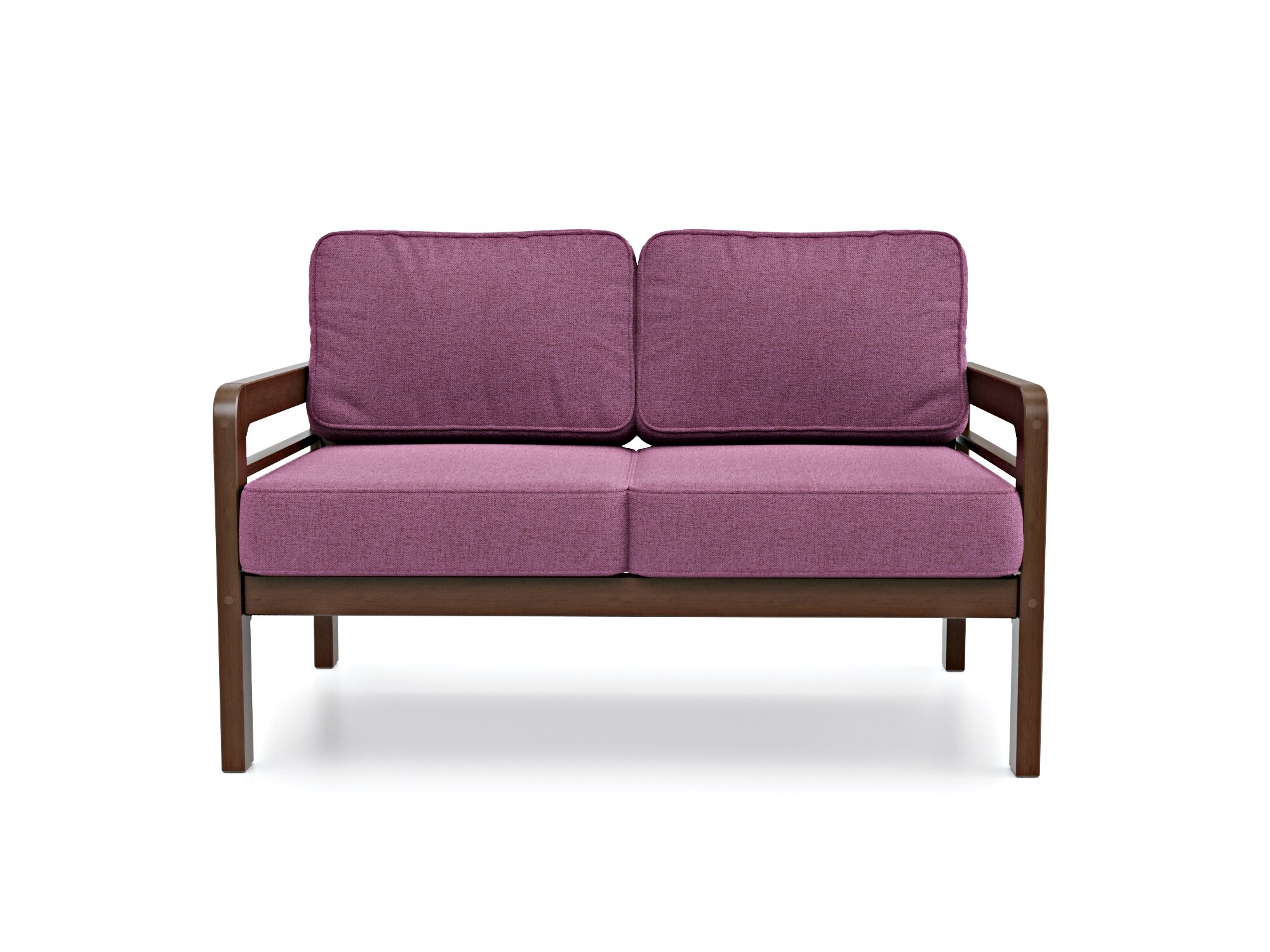 Купить Cадовый диван кушетка Soft Element Бергер Purple + nut, двухместный, дерева, подушки, скандинавский лофт, на кухню, в прихожую, для кафе и ресторанов