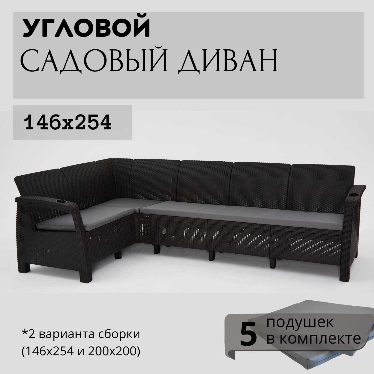 СохранитьДиван садовый Ротанг L-угловой садовый 146x254x79 см, мокко (подушки серого цвета) интересное:
