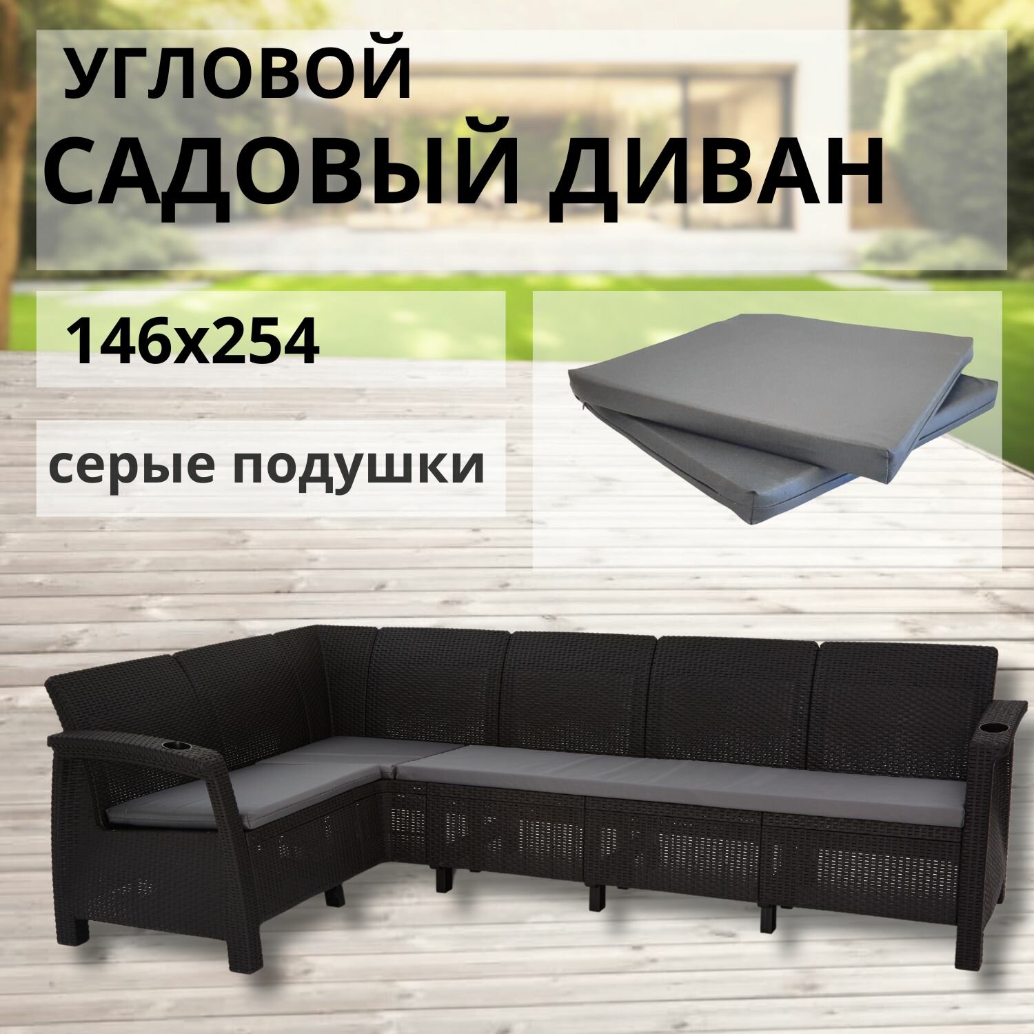 Купить Диван садовый Ротанг L-угловой садовый 146x254x79 см, мокко (подушки серого цвета)