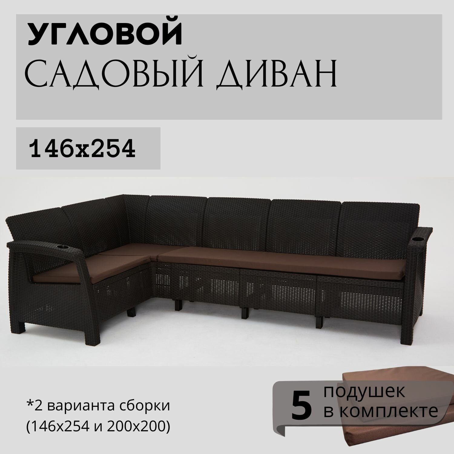 СохранитьДиван садовый Ротанг L-угловой садовый 146x254x79 см, мокко (подушки коричневого цвета) интересное: