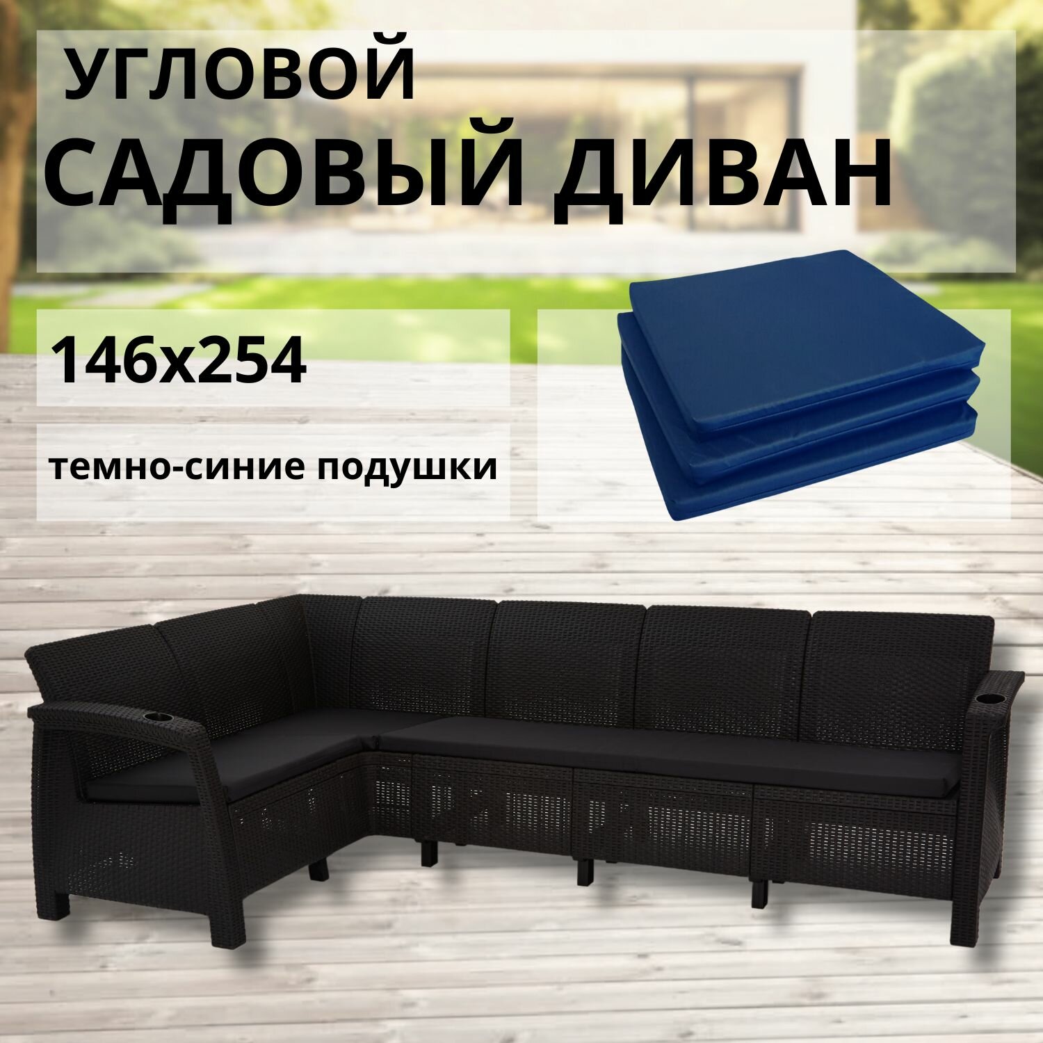 СохранитьДиван садовый Ротанг L-угловой садовый 146x254x79 см, мокко (подушки темно-синего цвета) интересное: