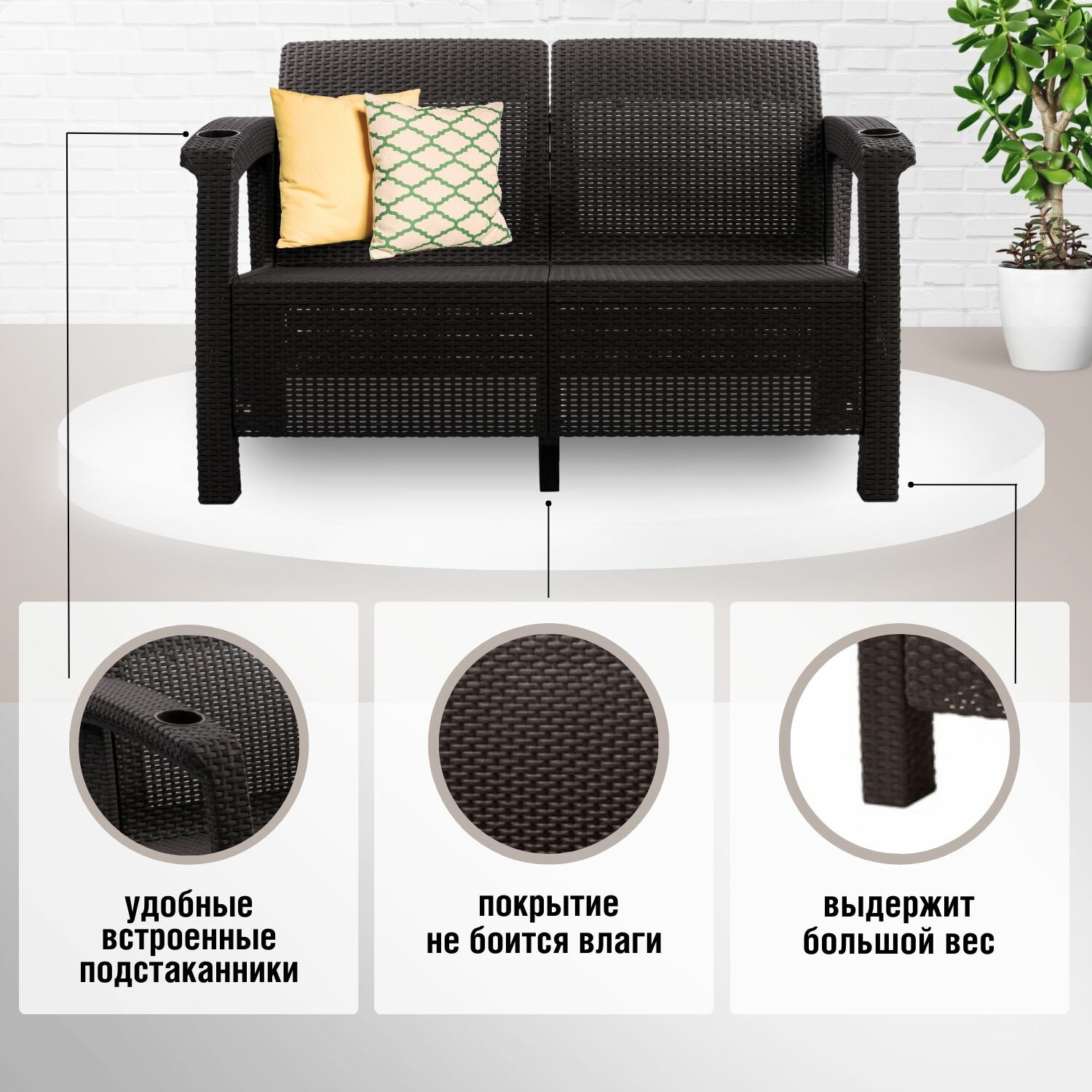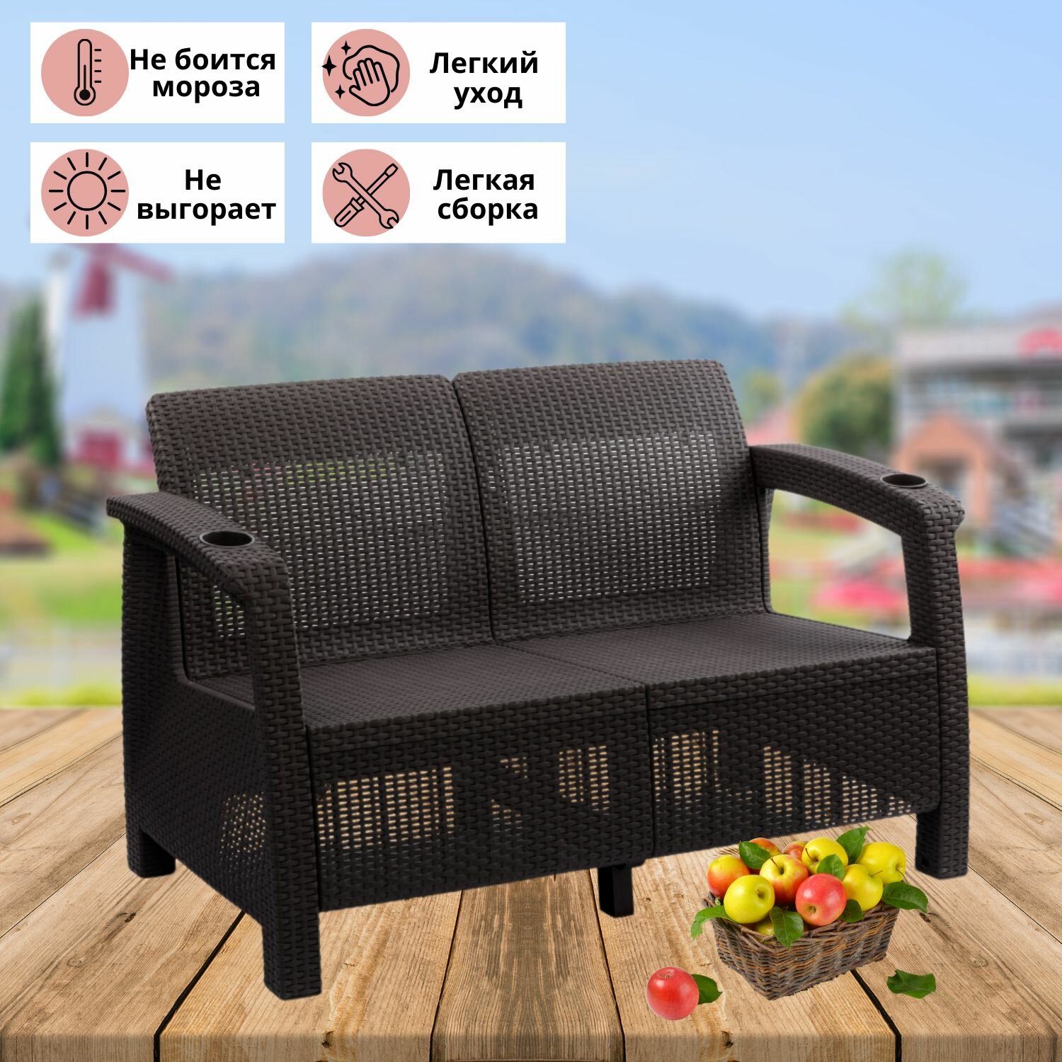 Диван "Ротанг", с подстаканниками, 127х70х79 см, цвет мокко