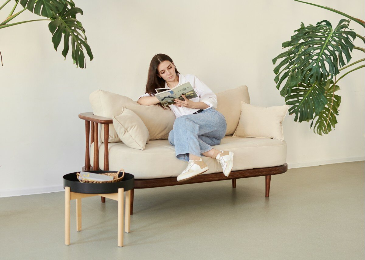 Диван садовый Soft Element Ламе-С, двухместный, деревянный, велюр, слоновая кость - орех, на террасу, на веранду, для дачи и сада, дачный, для бани