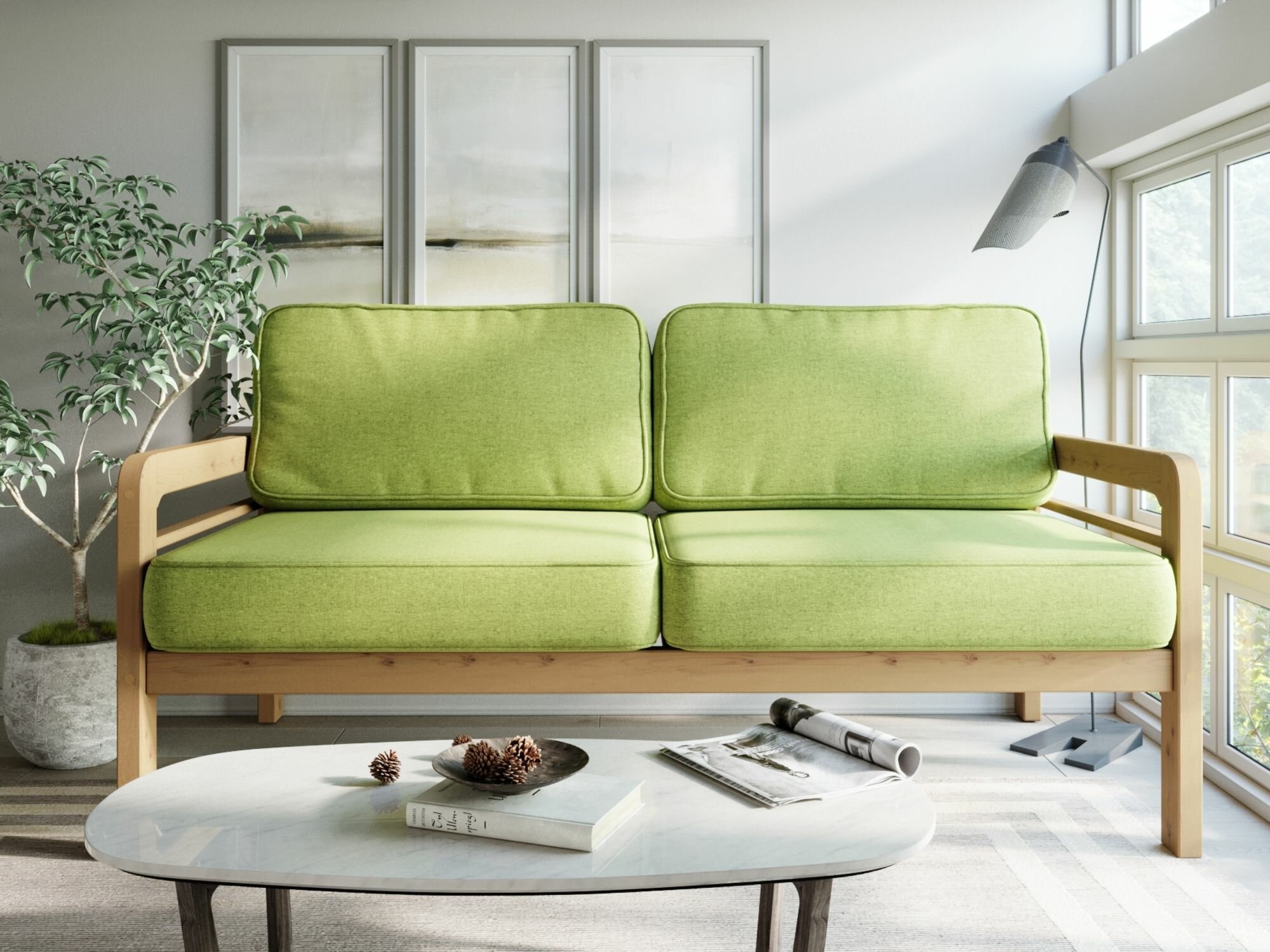 СохранитьСадовый диван кушетка БЕРГЕР-Б-С, зеленая-сосна, рогожка, трехместный, деревянный, в гостиную, в прихожую, на балкон, скандинавский лофт интересное: